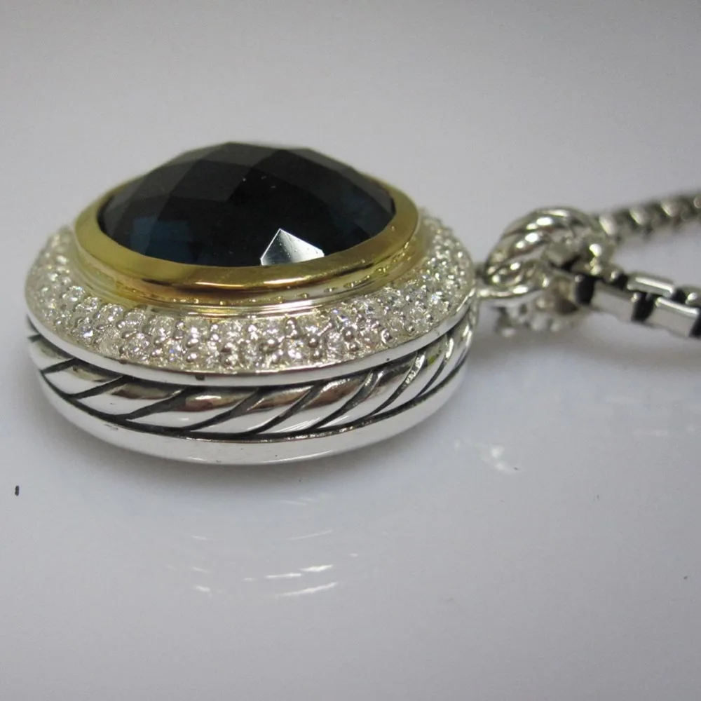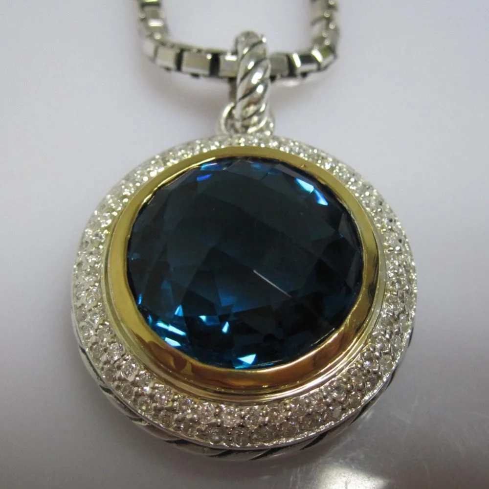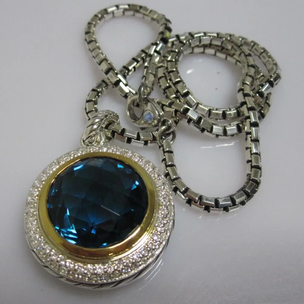 Product Name: الصلبة 925 الفضة والمجوهرات 18 مللي متر الزهري قلادة مع هامبتون الأزرق توباز تصميم العلامة التجارية مجوهرات المرأة محسن دون سلسلة