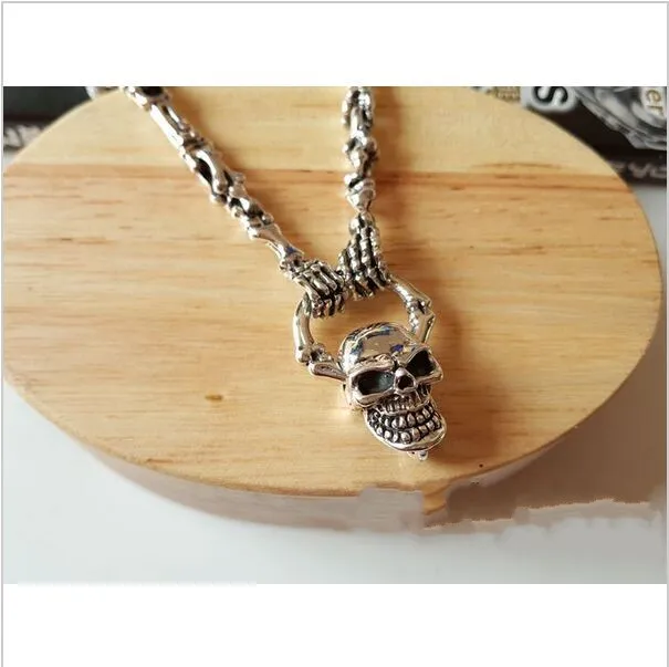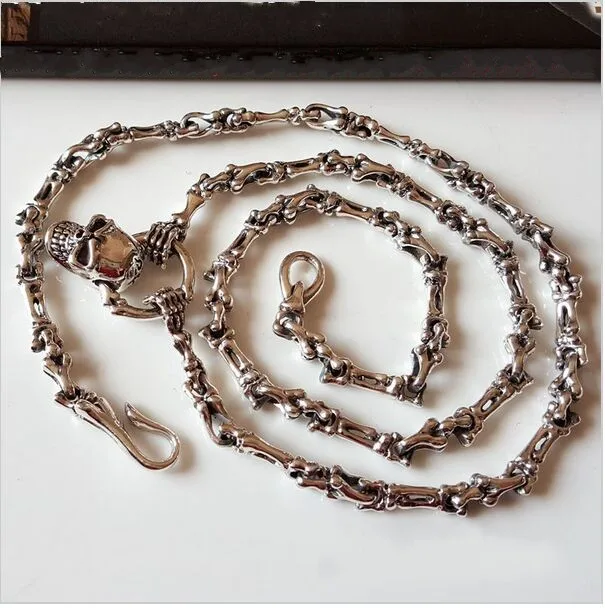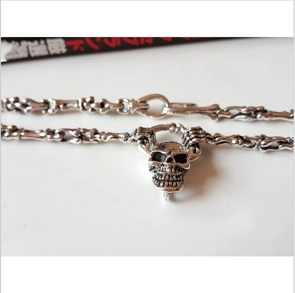 Product Name: التايلاندية قلادة فضية للرجل 925 فضة حقيقية الرجال طويلة فاسق الجمجمة قلادة قلادة مجموعة الرجعية العظام سلسلة