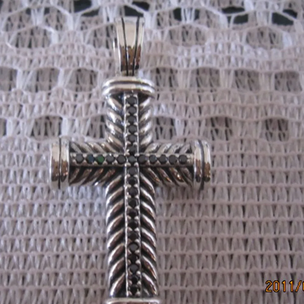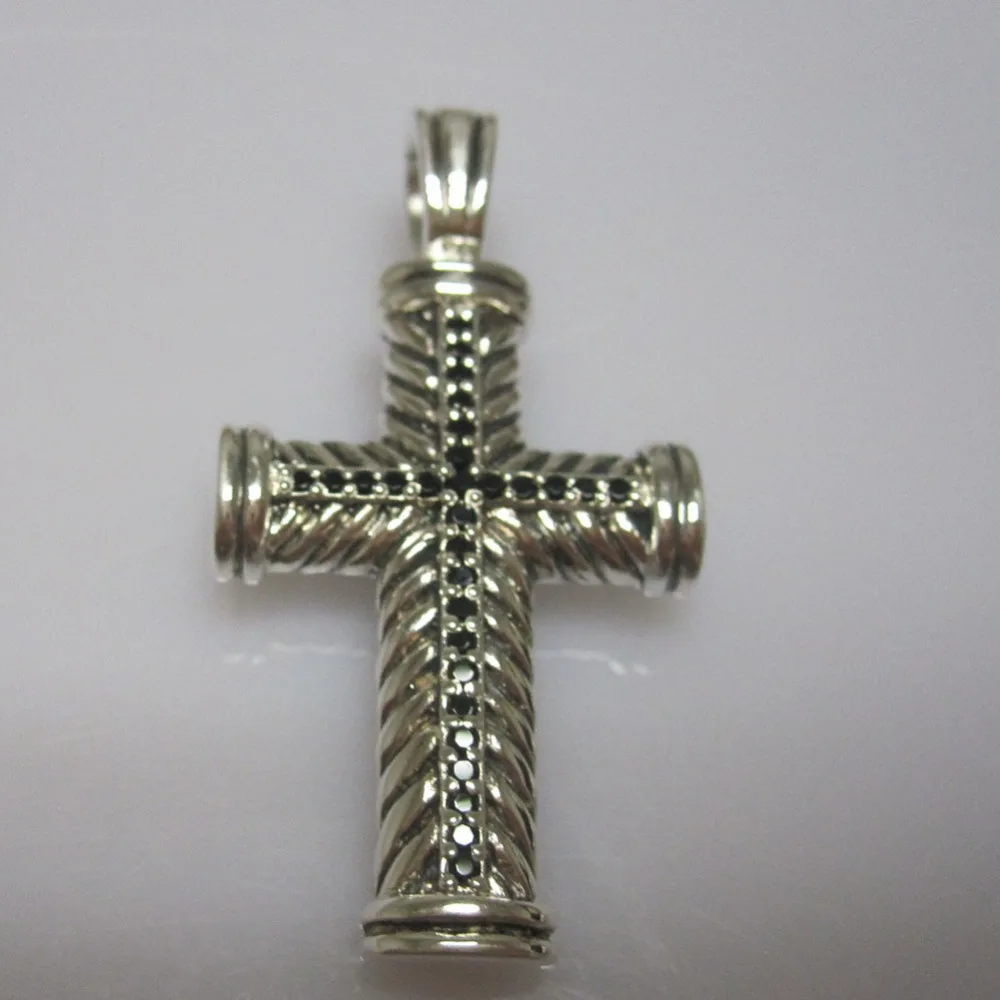 Product Name: الصلبة 925 الفضة الرجال المجوهرات الأسود الماس شيفرون الصليب قلادة تصميم مجوهرات الرجال قلادة قلادة قلادة غرامة