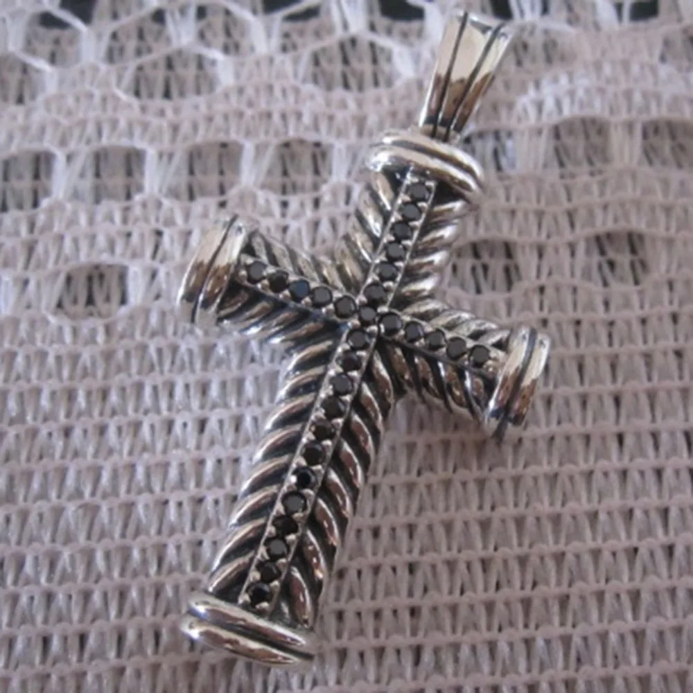 Special Offer الصلبة 925 الفضة الرجال المجوهرات الأسود الماس شيفرون الصليب قلادة تصميم مجوهرات الرجال قلادة قلادة قلادة غرامة Discount 0% Today!