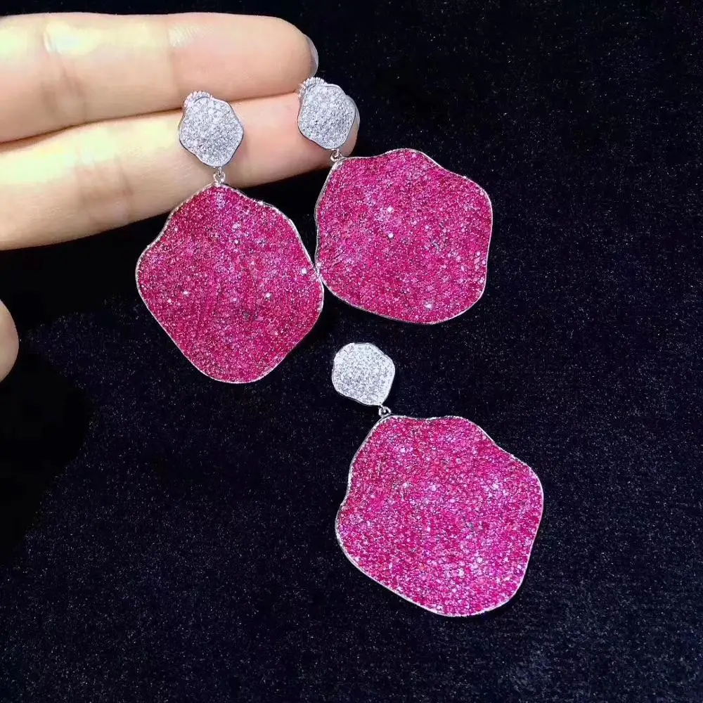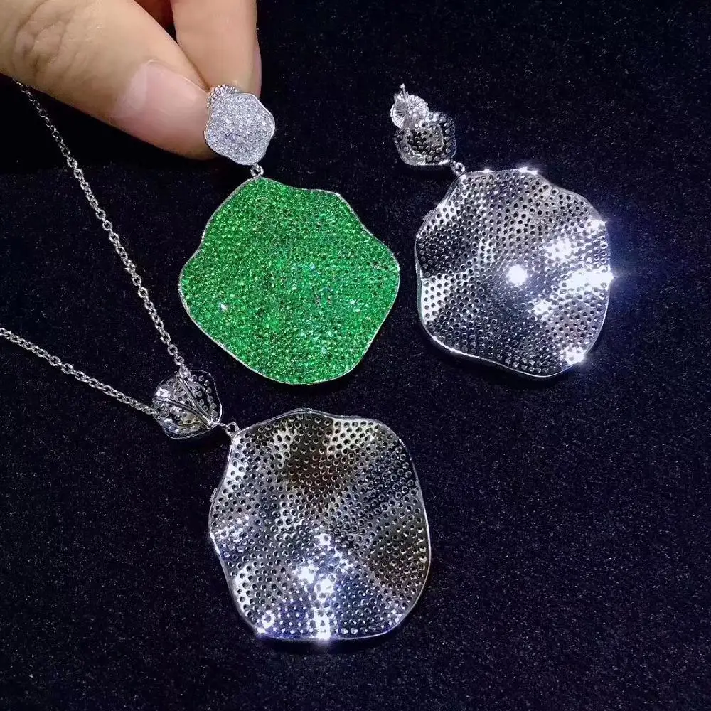 Product Name: الأزرق الأخضر اللون غير النظامية 925 فضة مع مكعب الزركون انخفاض القرط و قلادة طقم مجوهرات غرامة مجوهرات للحزب