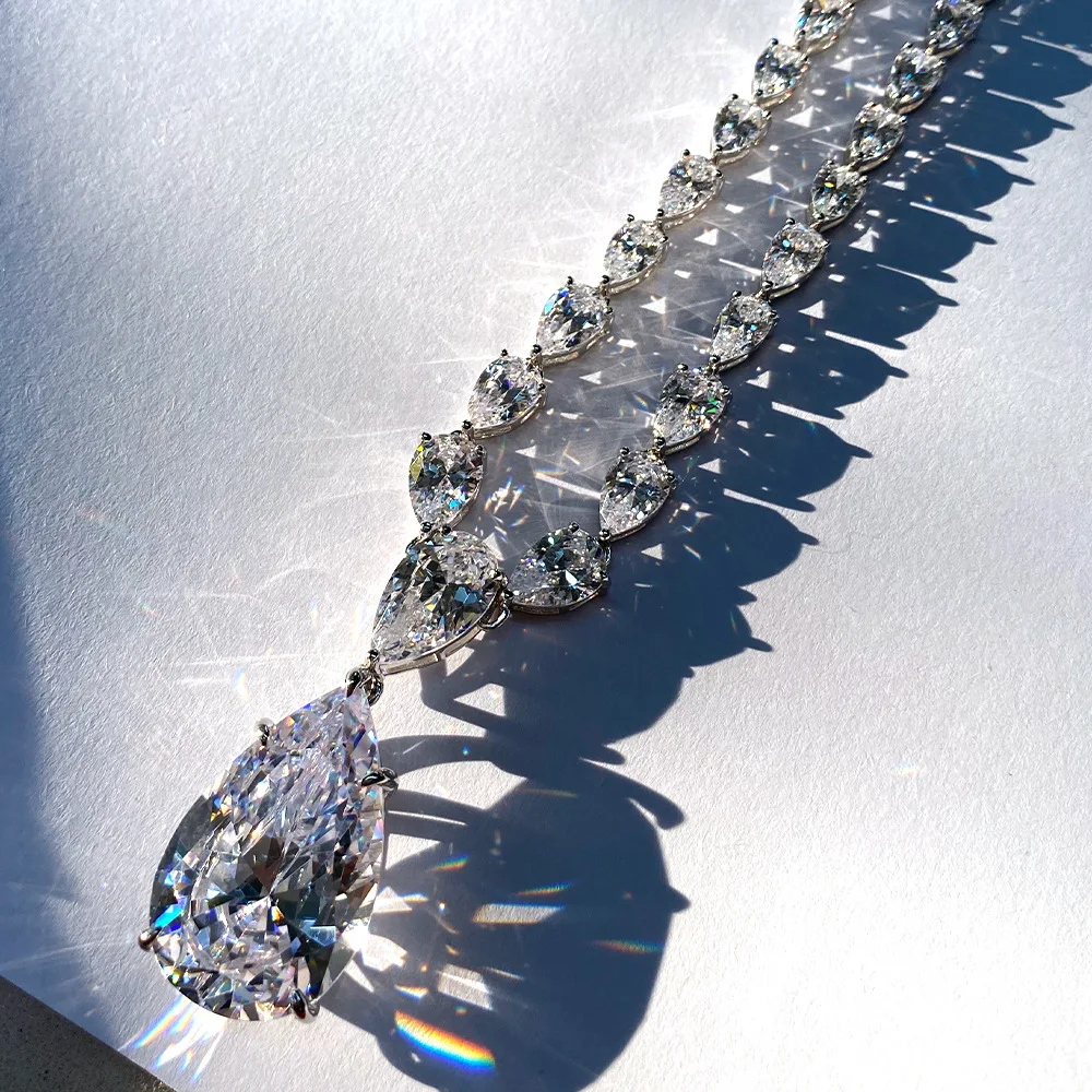 Product Name: قلادة فاخرة من الفضة الإسترليني 925 من PANSYSEN مُزينة بالأحجار الكريمة على شكل مويسانيتي للبيع بالجملة عقد من المجوهرات الراقية