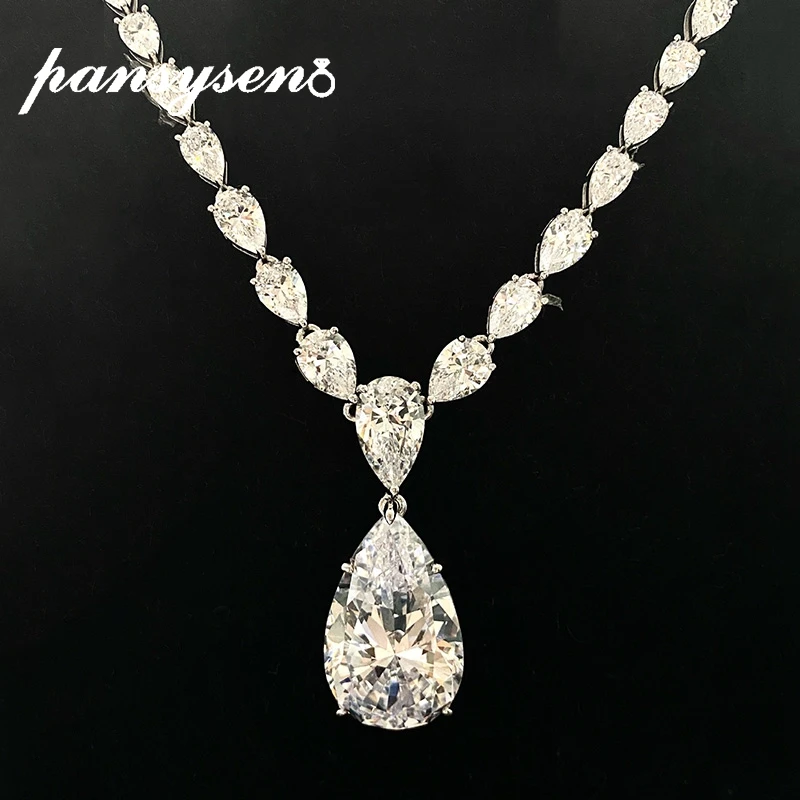 Special Offer قلادة فاخرة من الفضة الإسترليني 925 من PANSYSEN مُزينة بالأحجار الكريمة على شكل مويسانيتي للبيع بالجملة عقد من المجوهرات الراقية Discount 50% Today!