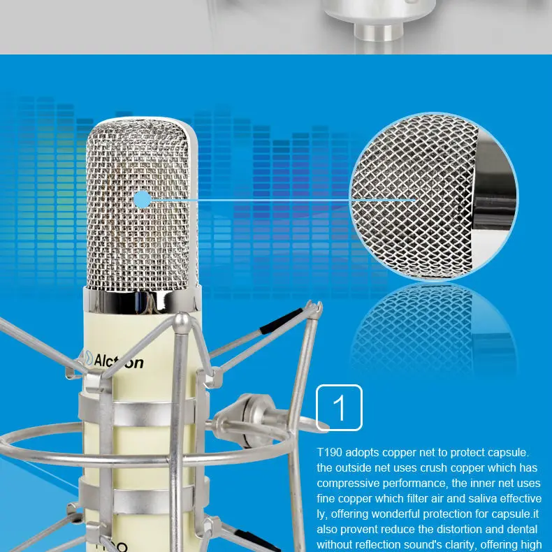 Product Name: الأصلي Alctron T190 المهنية كبيرة الحجاب الحاجز أنبوب مكثف ميكروفون ستوديو مع صدمة جبل الطاقة الزجاج الأمامي حمل