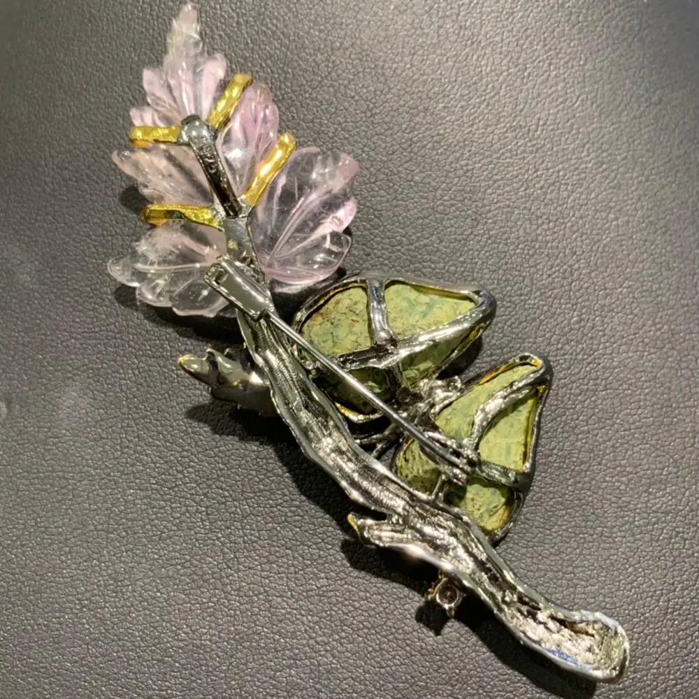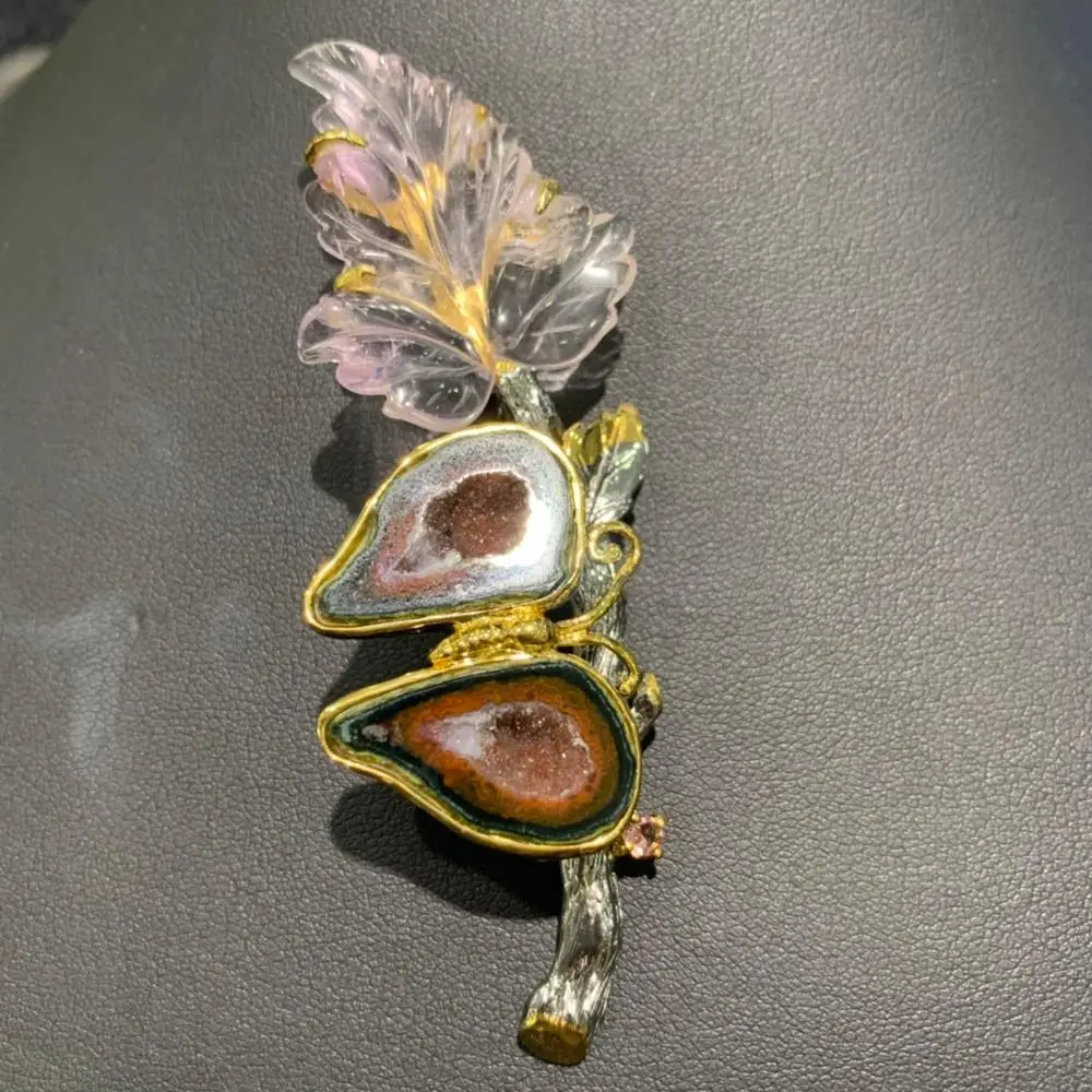 Product Name: العقيق الطبيعي و الكريستال فراشة Amethy ليف بروش قلادة مزدوجة استخدام غرامة النساء مجوهرات 925 فضة فقط 1 قطعة