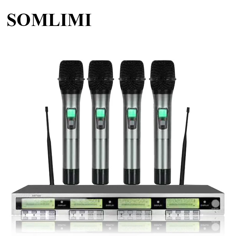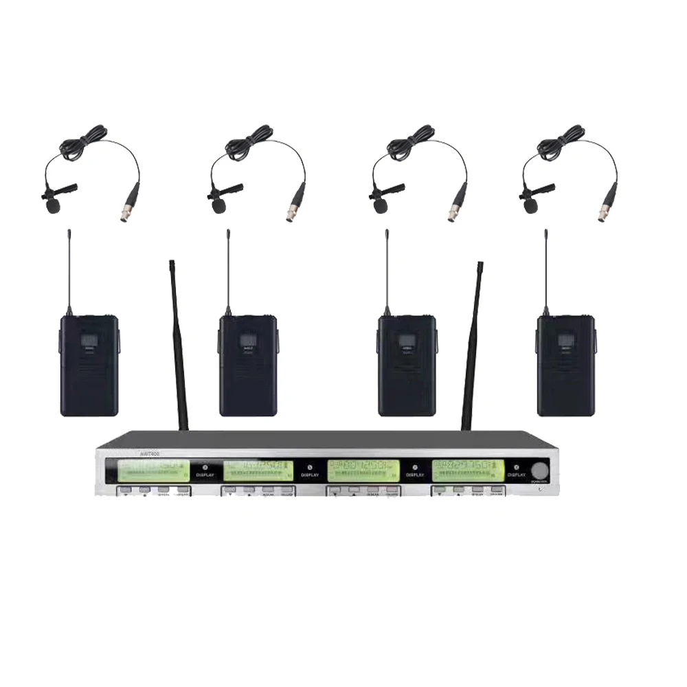 Product Name: سوم عالية الجودة المهنية AWT400 4 قنوات يده ميكروفون لاسلكي المهنية Lavalier كليب سماعة رأس مع ميكروفون