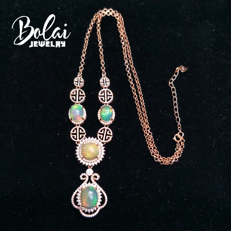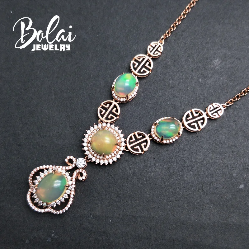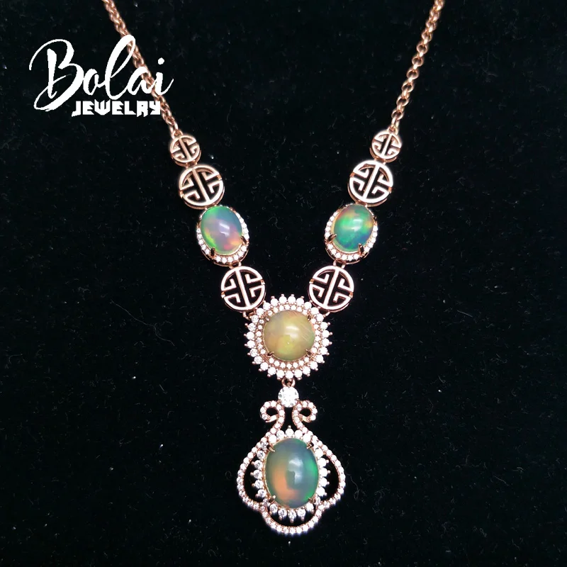 Product Name: Bolaijewelry ، الأزياء الفاخرة حزب قلادة و قلادة الطبيعي إثيوبيا أوبال 925 الفضة الاسترليني غرامة مجوهرات امرأة الزفاف هدية
