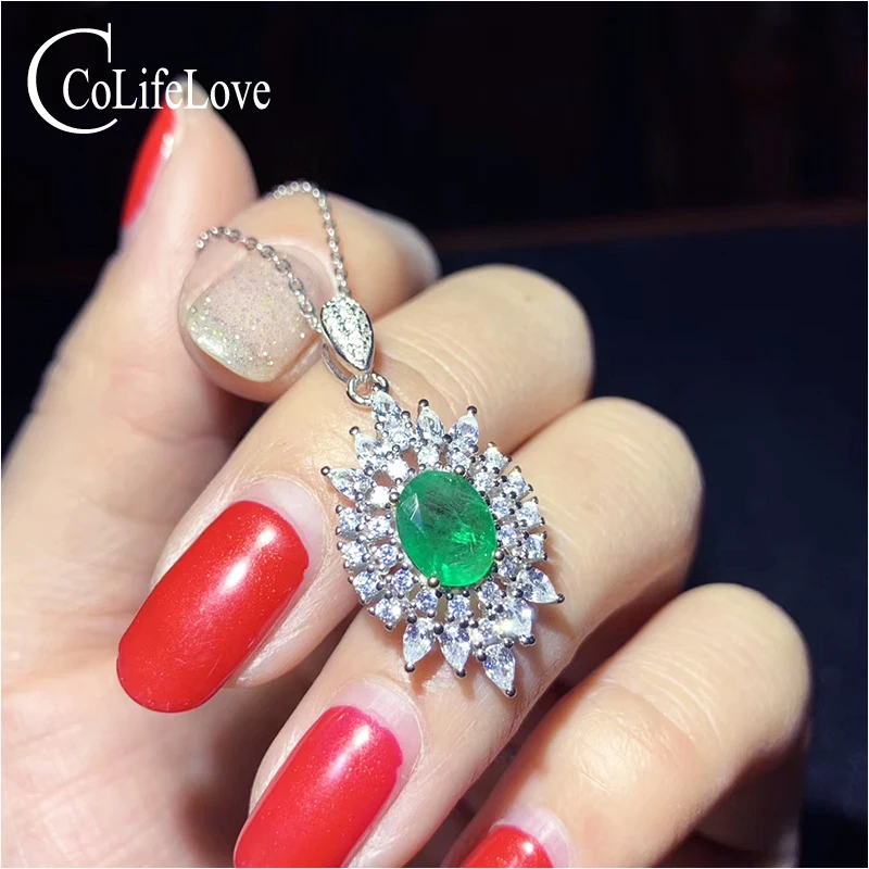 Product Name: CoLife مجوهرات خمر 925 الفضة الزمرد قلادة لل زفاف 0.8ct 100% الطبيعية الزمرد الفضة قلادة الزمرد مجوهرات