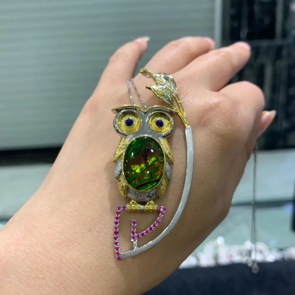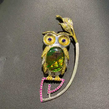 Product Name: حجر طبيعي اموليت البومة بروش & قلادة Doulbe استخدام للجنسين 925 فضة غرامة مجوهرات نمط فريد من نوعه نفس الصورة