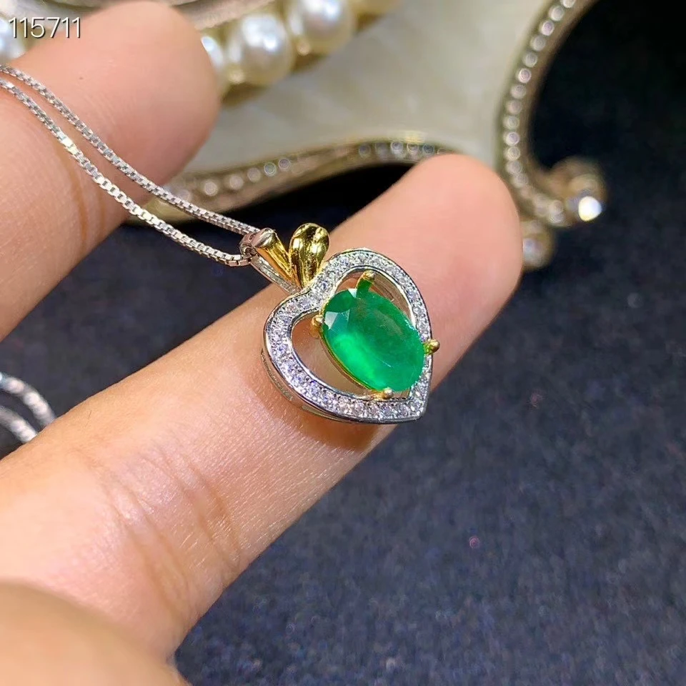 Special Offer KJJEAXCMY غرامة مجوهرات 925 الفضة النقية مطعمة الطبيعية الزمرد فتاة جديدة قلادة جميلة القلب قلادة أنيقة اختبار الدعم Discount 19% Today!