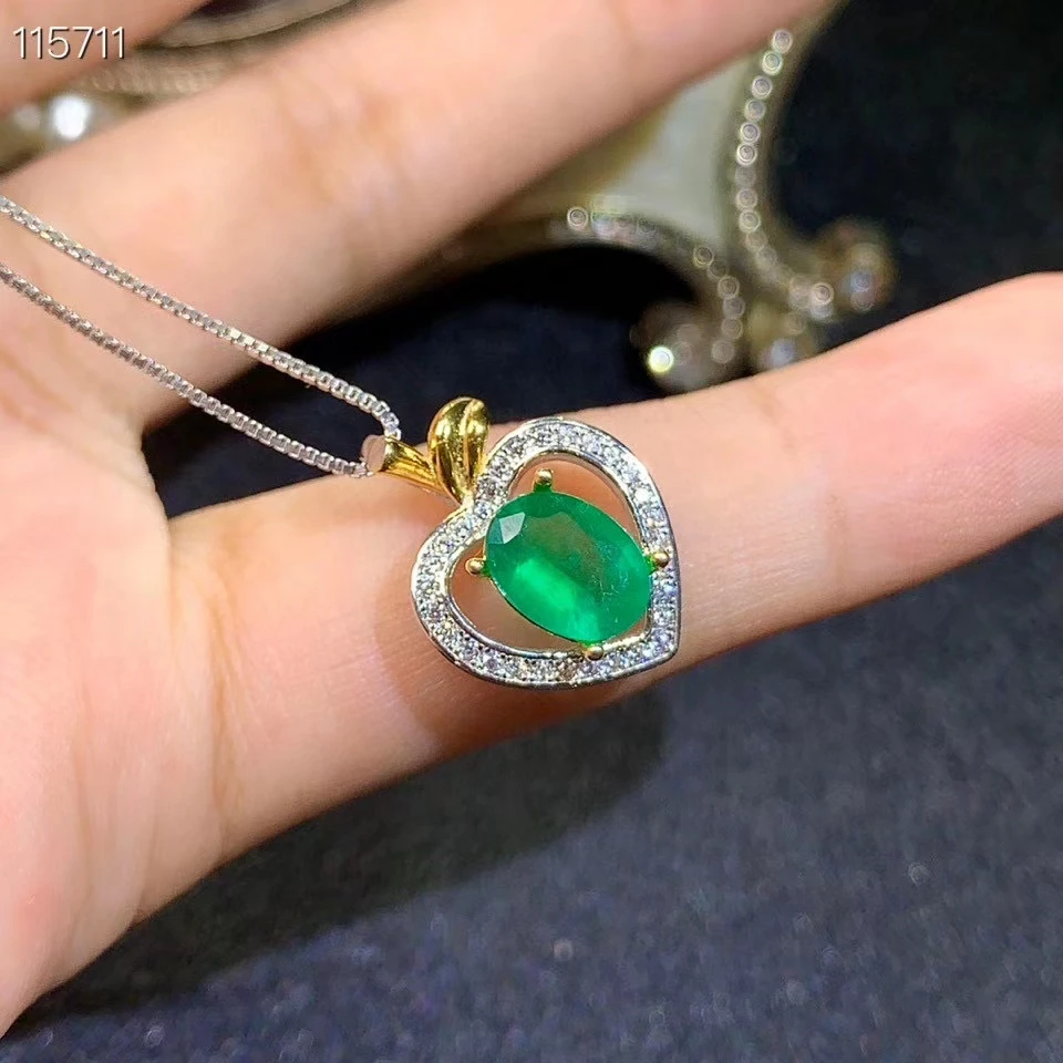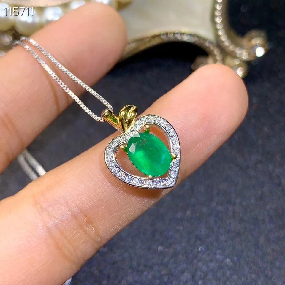 Product Name: KJJEAXCMY غرامة مجوهرات 925 الفضة النقية مطعمة الطبيعية الزمرد فتاة جديدة قلادة جميلة القلب قلادة أنيقة اختبار الدعم