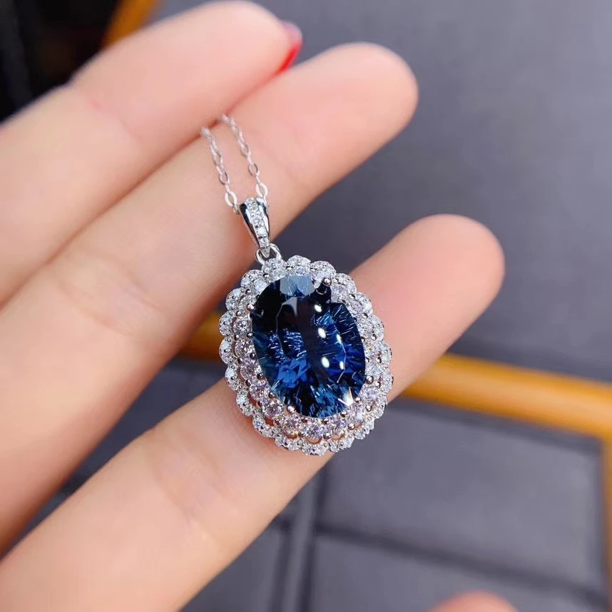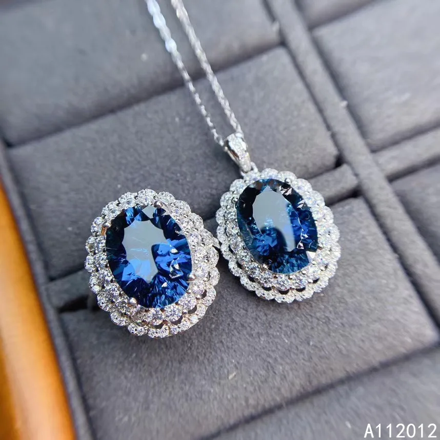 Special Offer KJJEAXCMY غرامة مجوهرات 925 فضة مطعمة الطبيعية الأزرق توباز فتاة جديدة شعبية قلادة حلقة مجموعة دعم اختبار الساخن بيع Discount 0% Today!
