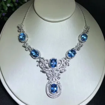 Special Offer الطبيعية الأزرق توباز جوهرة قلادة الأحجار الكريمة الطبيعية قلادة قلادة S925 الفضة الفاخرة الرجعية جوفاء النساء هدية مجوهرات الحفلات Discount 17% Today!