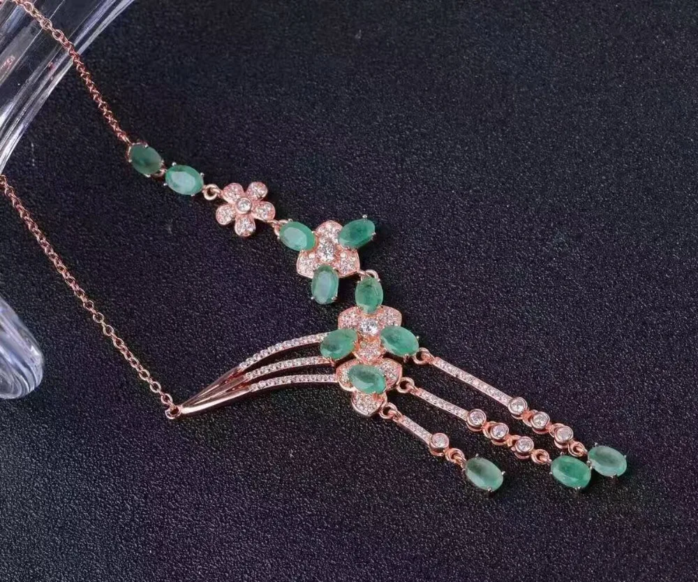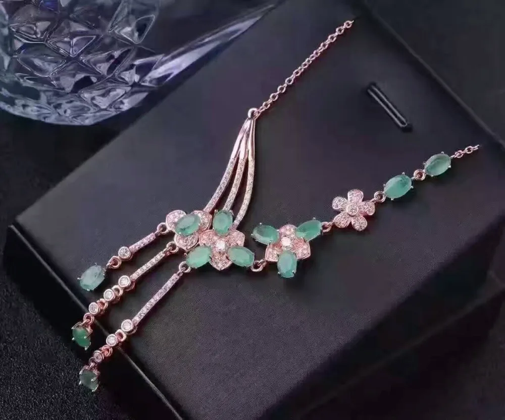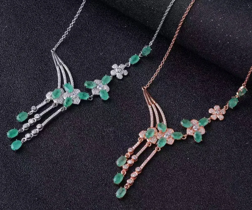 Product Name: الطبيعية الخضراء الزمرد قلادة الطبيعية قلادة قلادة S925 الفضة الفاخرة الأزياء شرابة الزهور نساء حزب المجوهرات