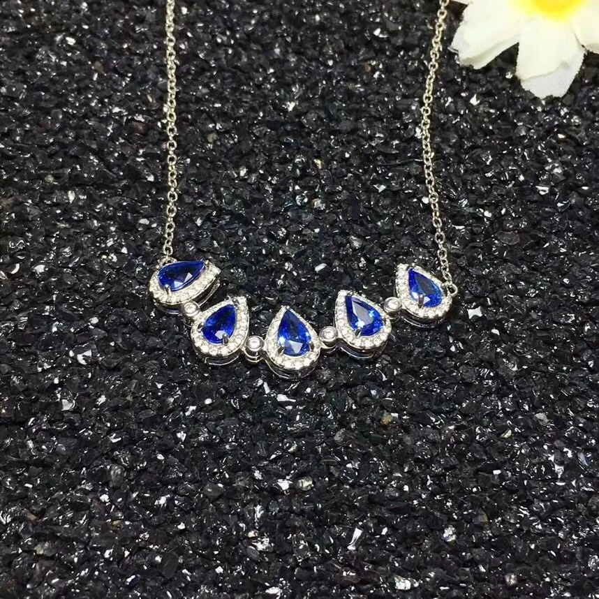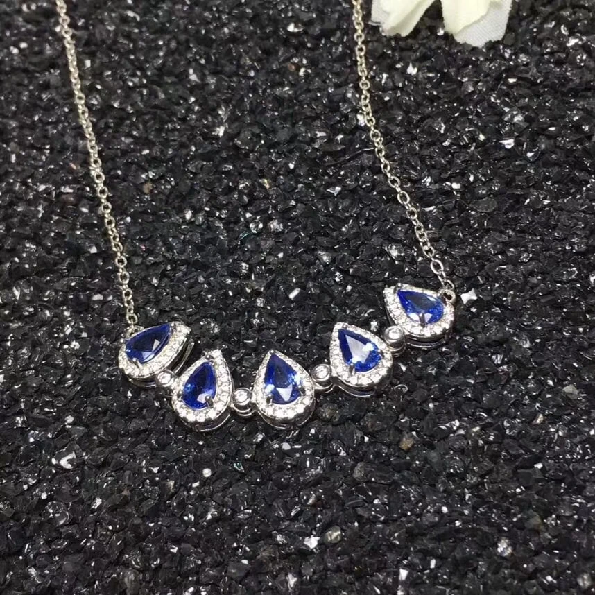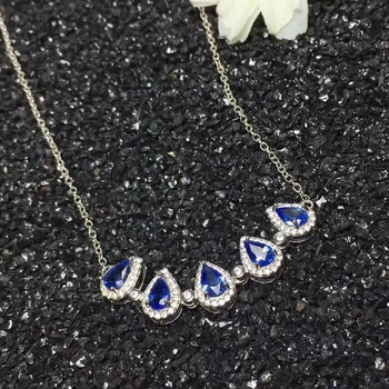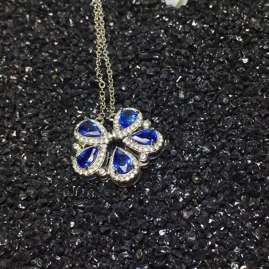 Product Name: الطبيعية الياقوت الأزرق جوهرة قطرة الماء زهرة اثنين ترتدي قلادة الأحجار الكريمة الطبيعية قلادة قلادة S925 الفضة فتاة هدية المجوهرات