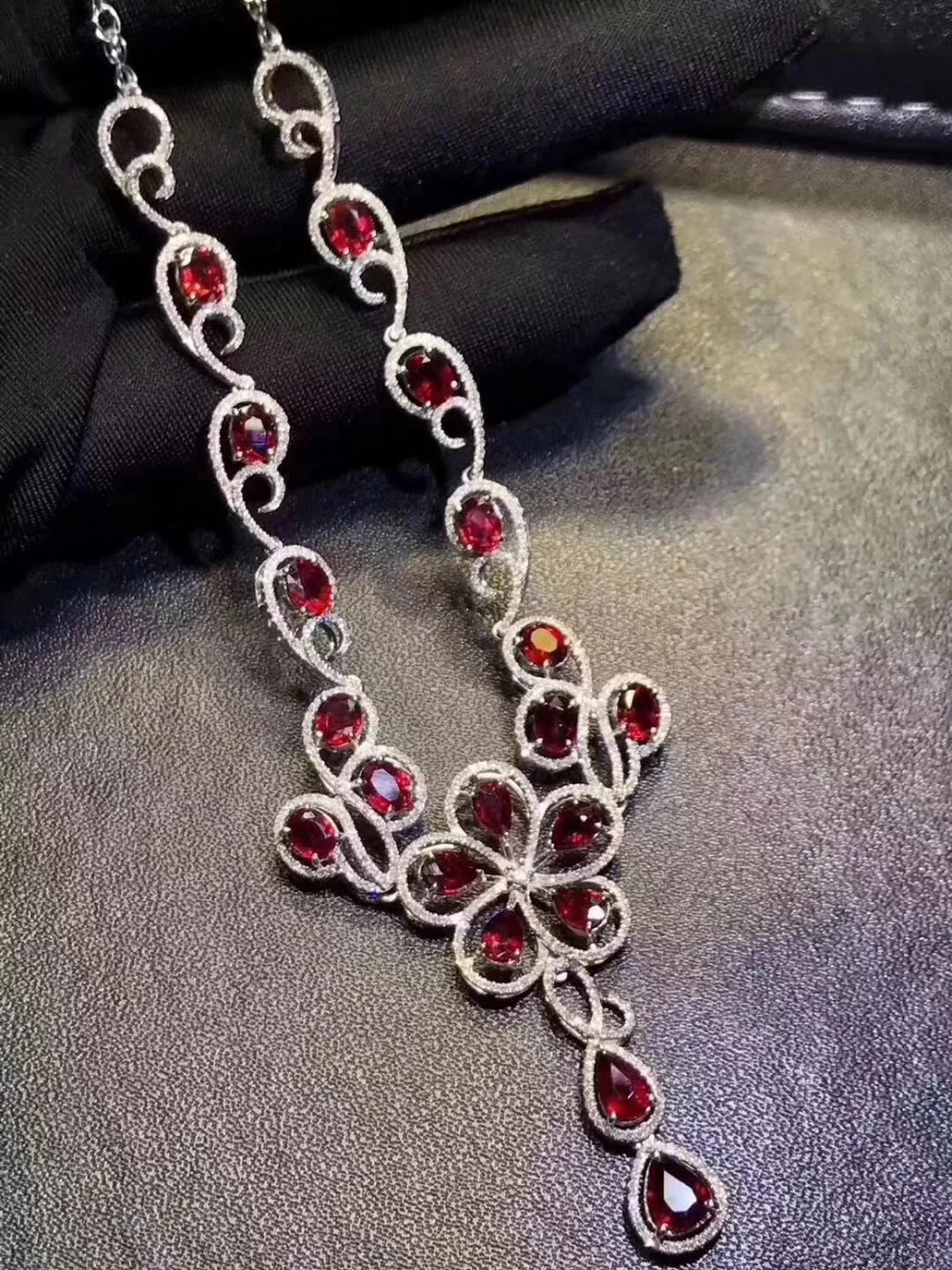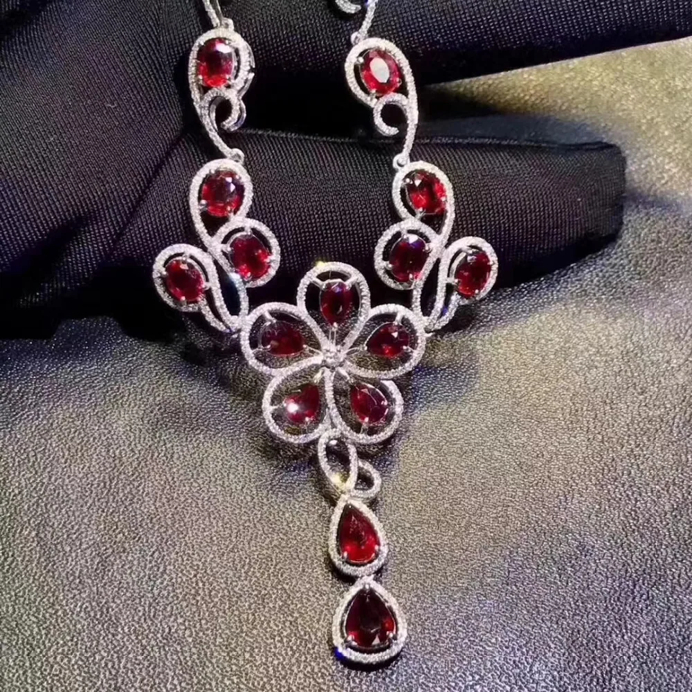Product Name: الطبيعية الأحمر روبي جوهرة قلادة قلادة S925 الفضة الطبيعية الأحجار الكريمة قلادة الفاخرة زهرة تحيط نساء الزفاف المجوهرات هدية