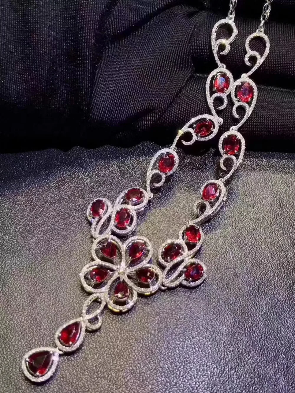 Special Offer الطبيعية الأحمر روبي جوهرة قلادة قلادة S925 الفضة الطبيعية الأحجار الكريمة قلادة الفاخرة زهرة تحيط نساء الزفاف المجوهرات هدية Discount 18% Today!