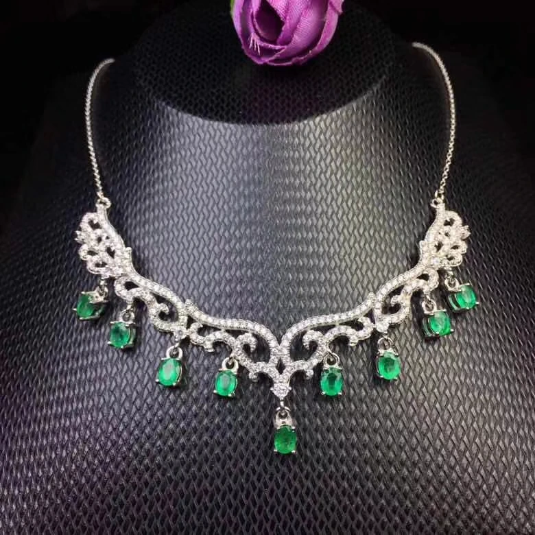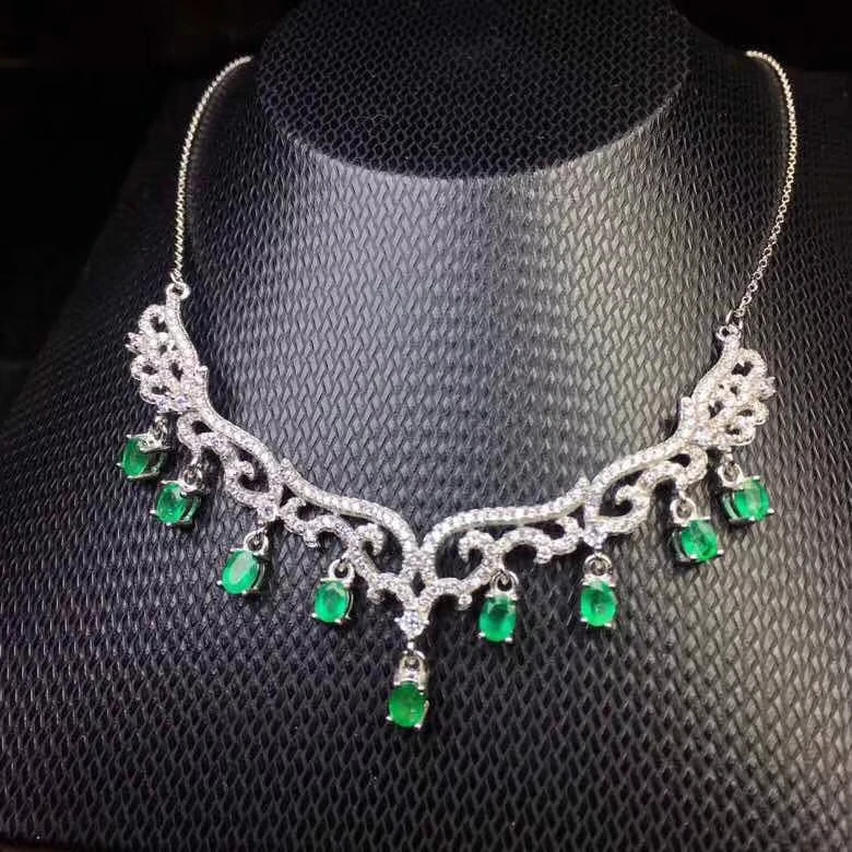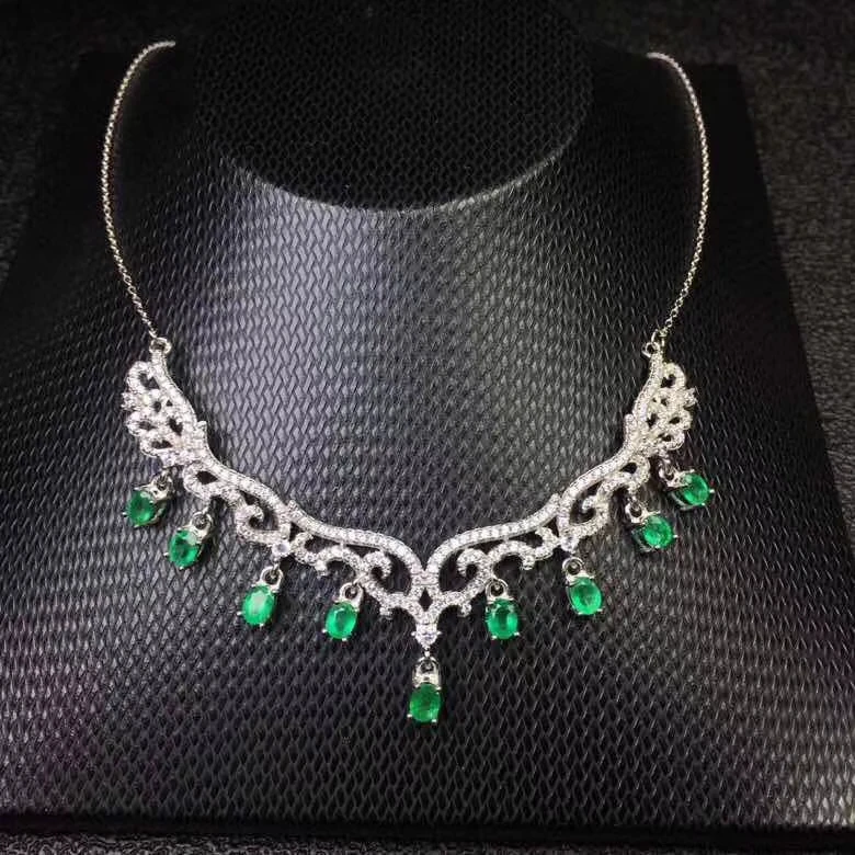 Product Name: الطبيعي الأخضر الزمرد قلادة قلادة S925 الفضة الطبيعية الأحجار الكريمة قلادة الفاخرة الرجعية قطرة الماء النساء حزب هدية المجوهرات