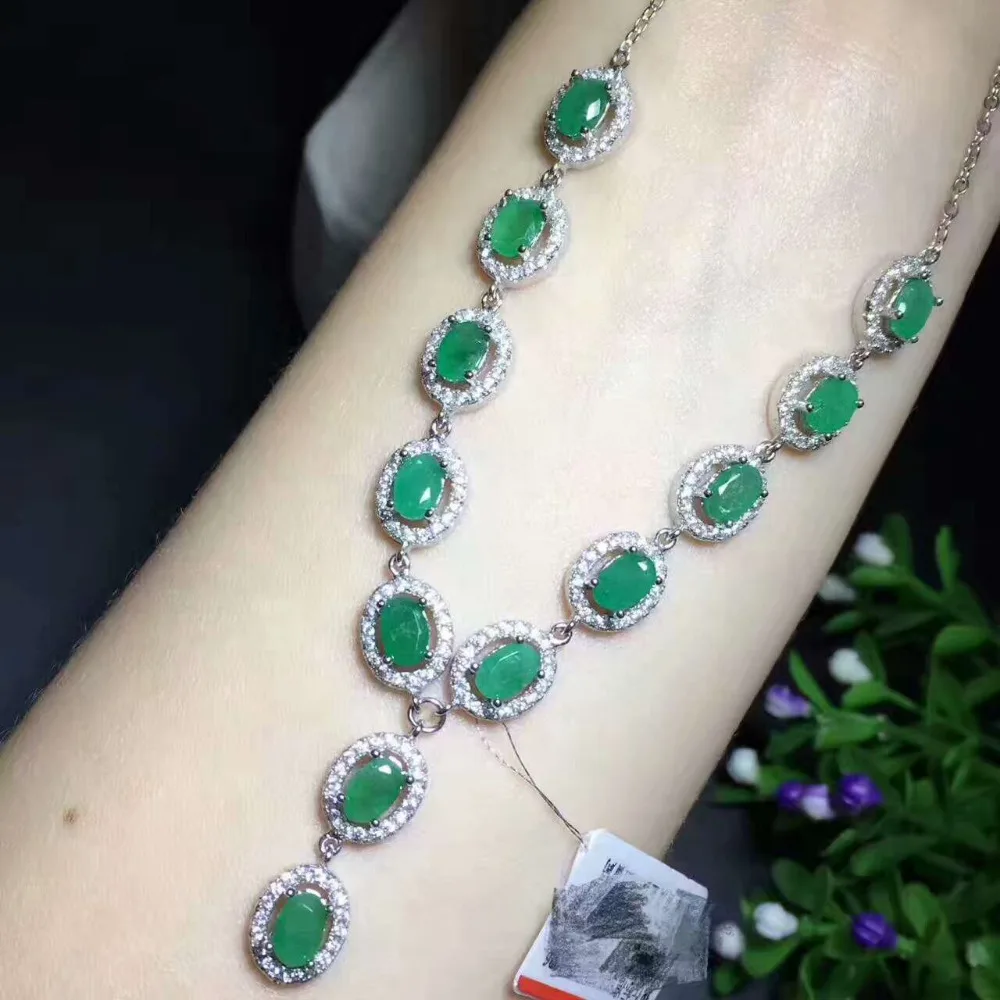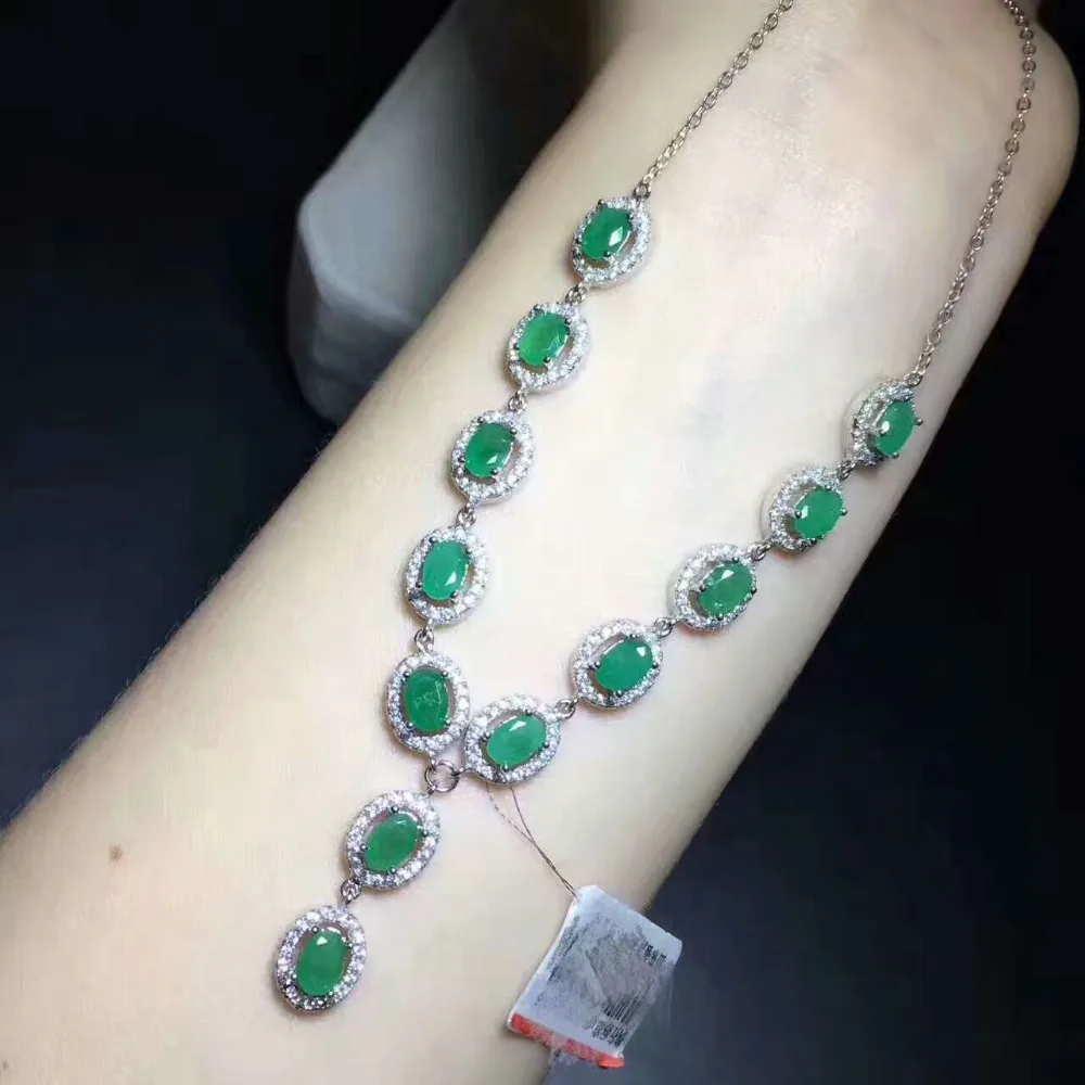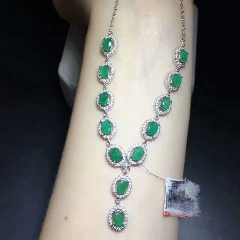 Special Offer الطبيعية الخضراء الزمرد جوهرة قلادة قلادة S925 فضة الاحجار الطبيعية قلادة فاخرة أنيقة جولة حزب المجوهرات Discount 18% Today!