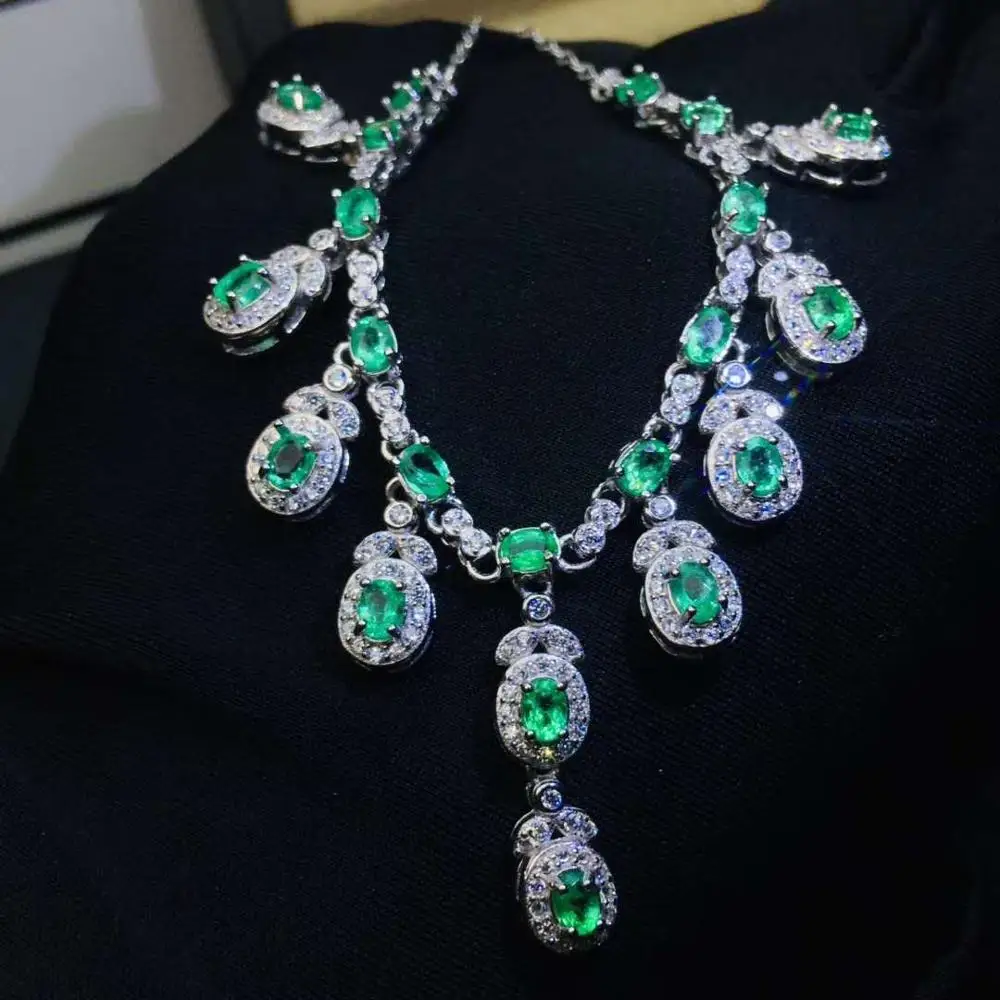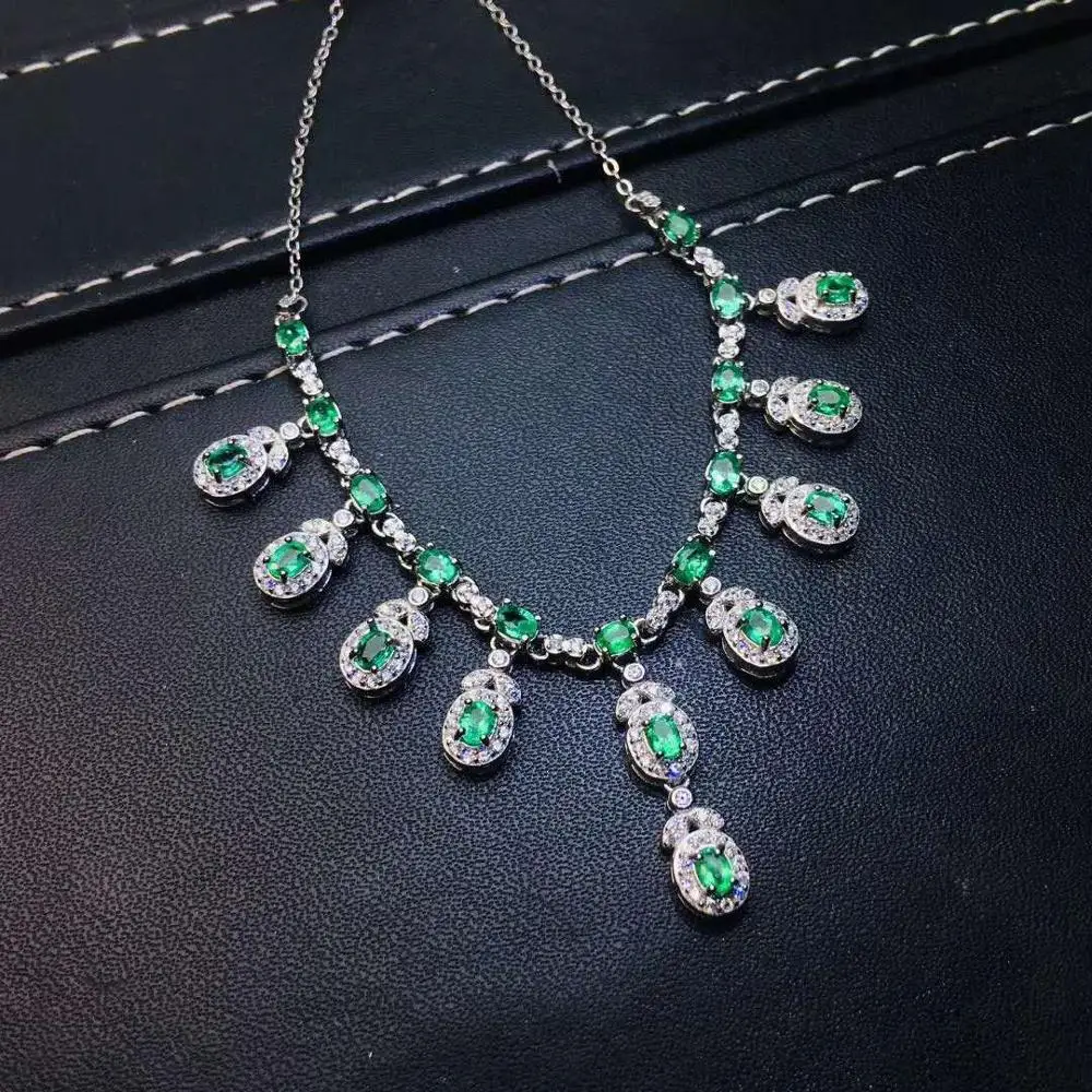 Product Name: الزمرد قلادة الطبيعية ريال الزمرد قلادة الصلبة S925 فضة للنساء اللون جوهرة حجر غرامة مجوهرات