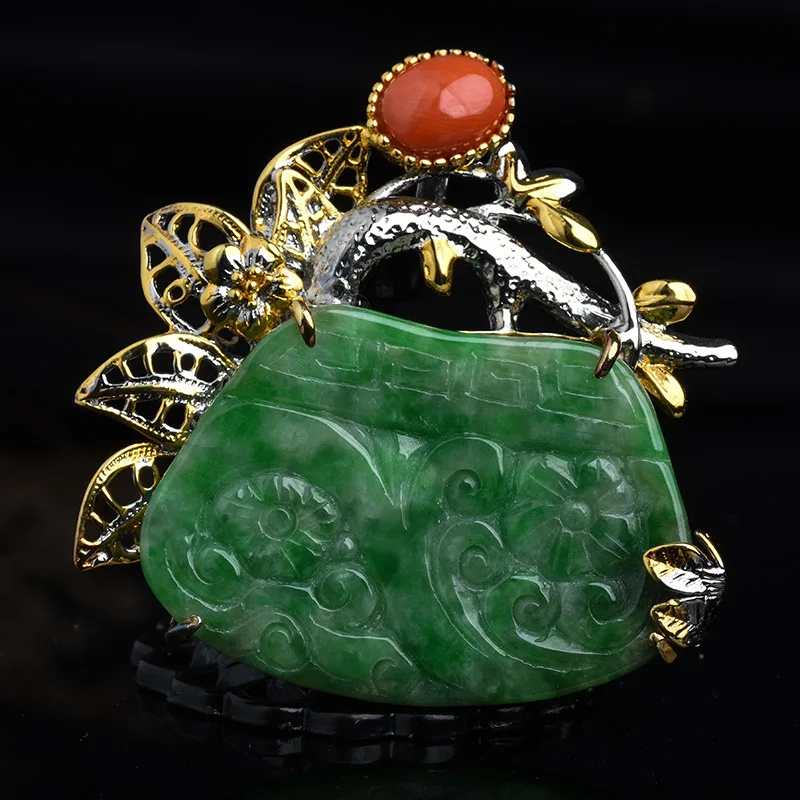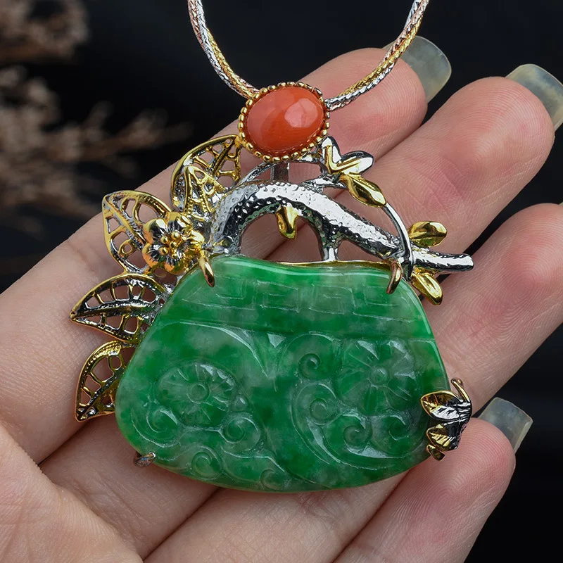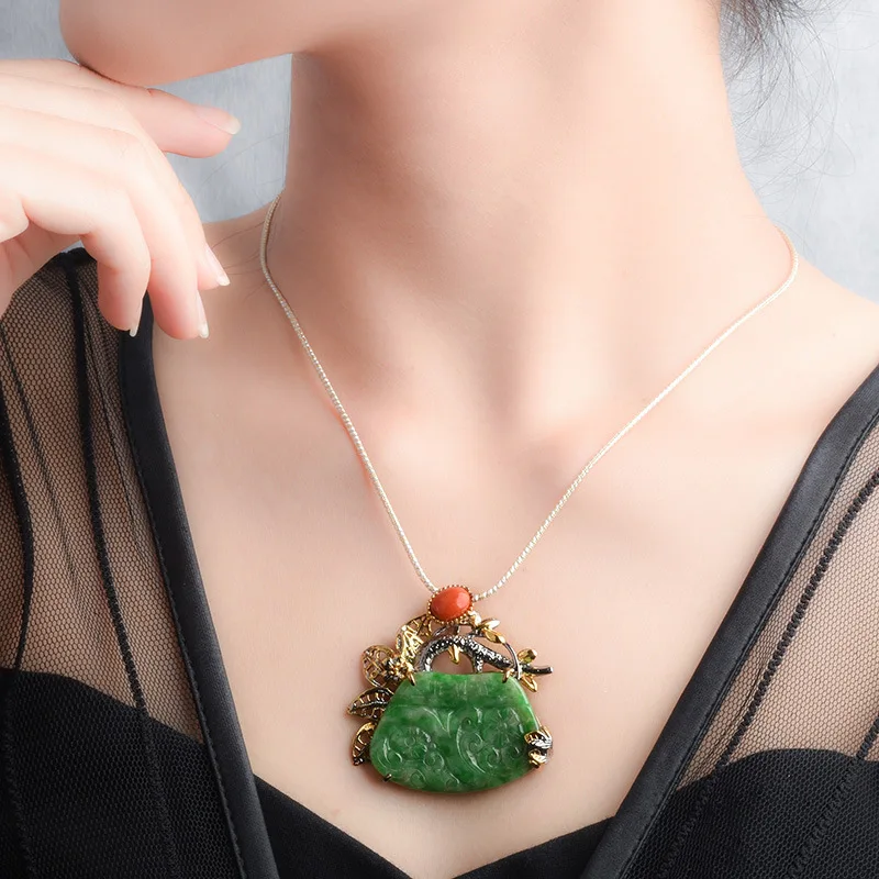 Product Name: مجوهرات فضية تايلاندية عتيقة الطراز مصنوعة يدويًا من الفضة الإسترليني S925 مجموعة يدوية بدلاية من حجر اليشم وبروش ثنائي الاستخدام