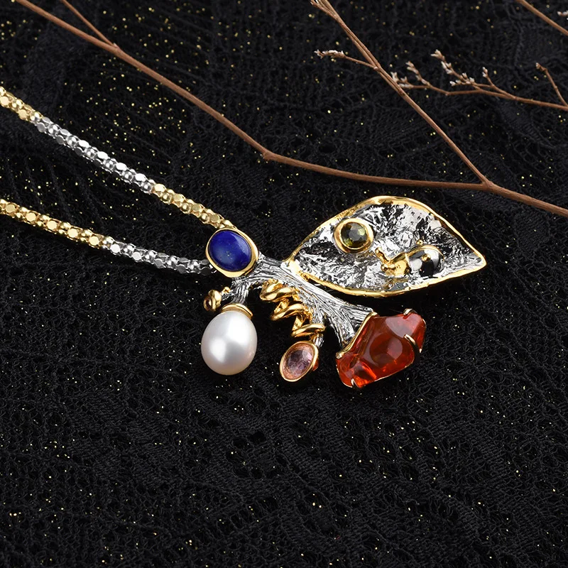 Product Name: الراقية مجوهرات المصنعين الجملة قلادة و بروش ثنائي استخدام الإبداعية جديد أوبال النار النساء S925 فضة مجوهرات