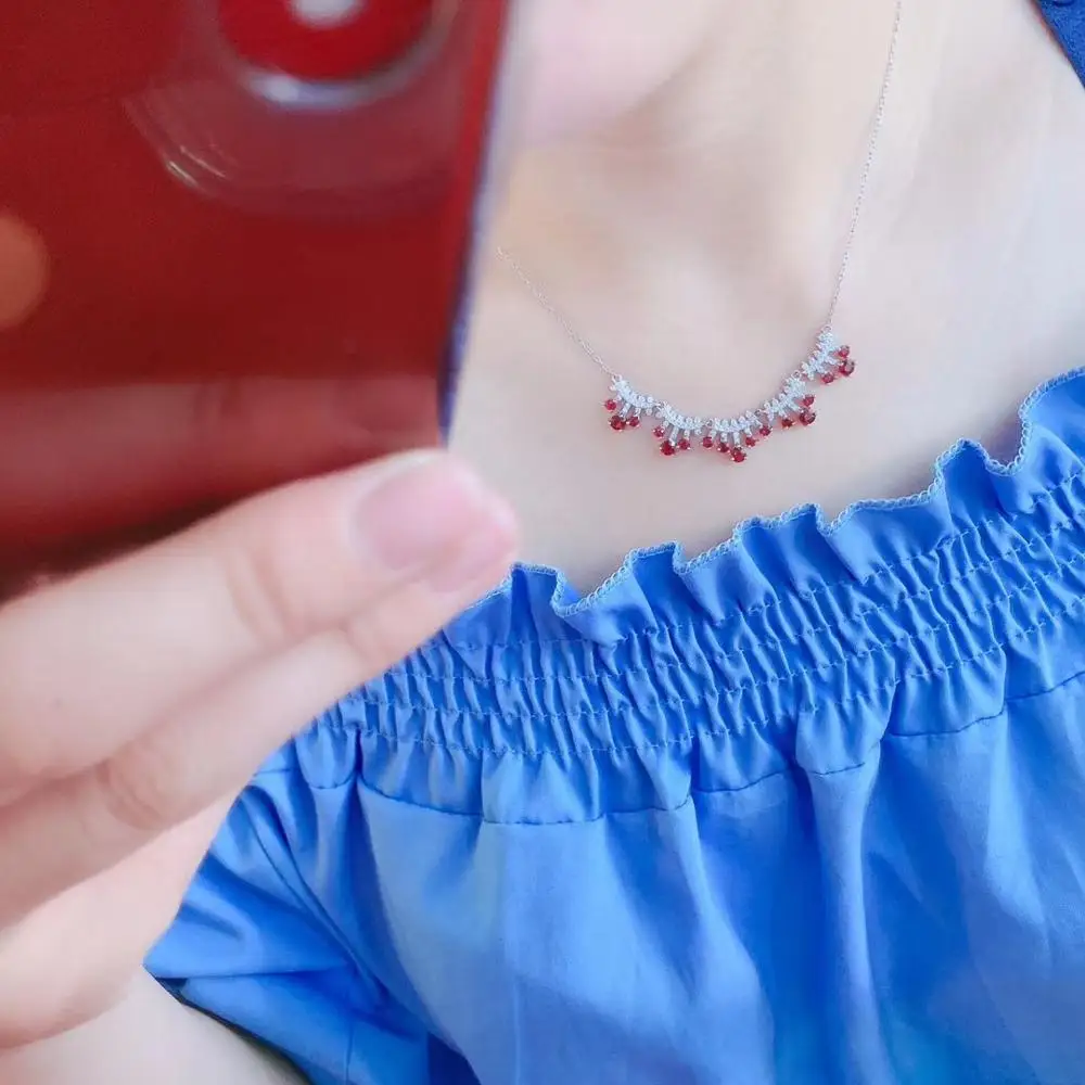 Special Offer الطبيعي الأحمر دلاية محلاه بالياقوت قلادة S925 الفضة الطبيعية الأحجار الكريمة قلادة الفاخرة شخصية صف Talonpaw النساء حزب المجوهرات Discount 18% Today!
