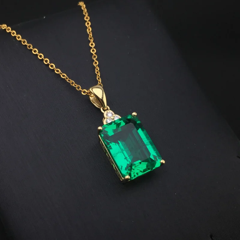 Product Name: قلادة قلادة مرصعة بالزمرد من VANTJ Lab قلادة من الذهب الطبيعي عيار 10 قيراط مجوهرات فاخرة من الذهب 0.07ct هدية للحفلات النسائية