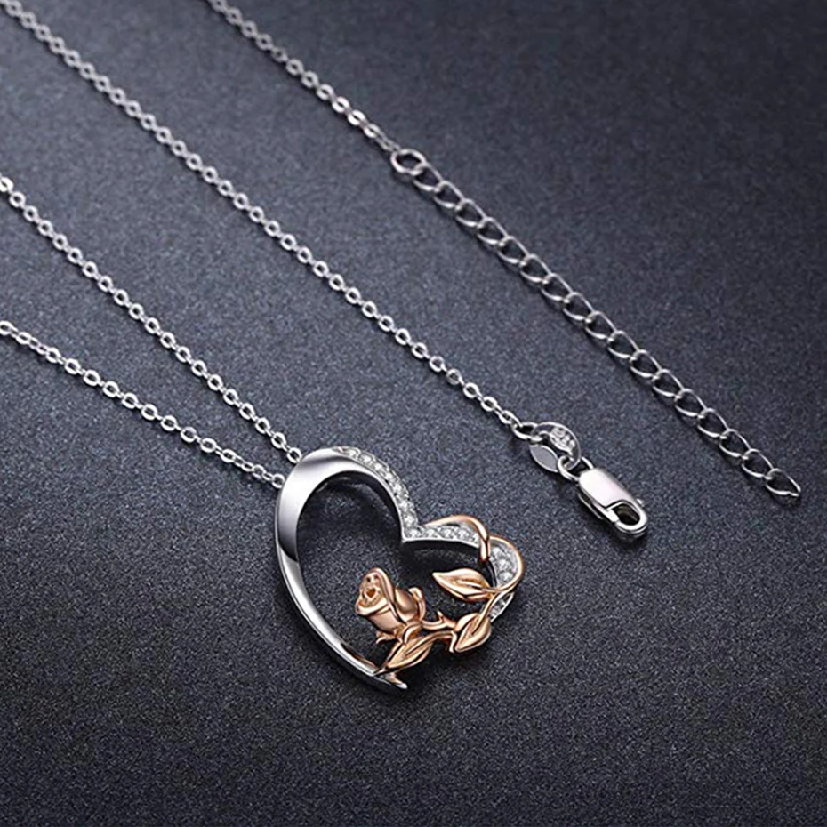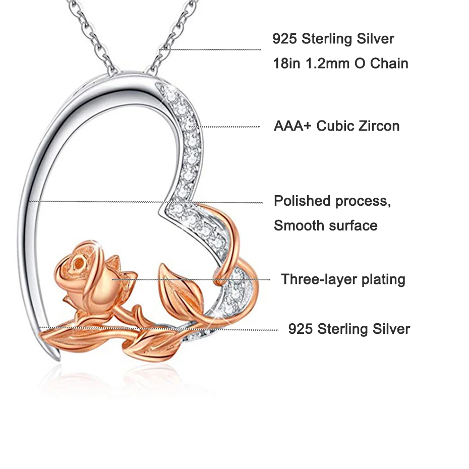 Product Name: YAFEINI 925 فضة قلادة بحلية متدلية على شكل وردة كريستال عقد من حجر الياقوت 925 سلسلة فضية عيد الحب هدية عيد الأم