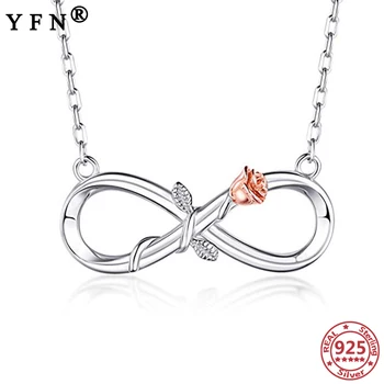 Special Offer YFN 925 فضة إنفينيتي و الورد قلادة القلائد سلسلة فضية 925 المرأة مجوهرات عيد الحب هدية عيد الأم هدايا Discount 0% Today!