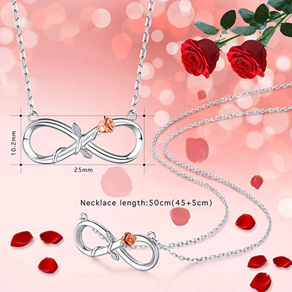 Product Name: YFN 925 فضة إنفينيتي و الورد قلادة القلائد سلسلة فضية 925 المرأة مجوهرات عيد الحب هدية عيد الأم هدايا