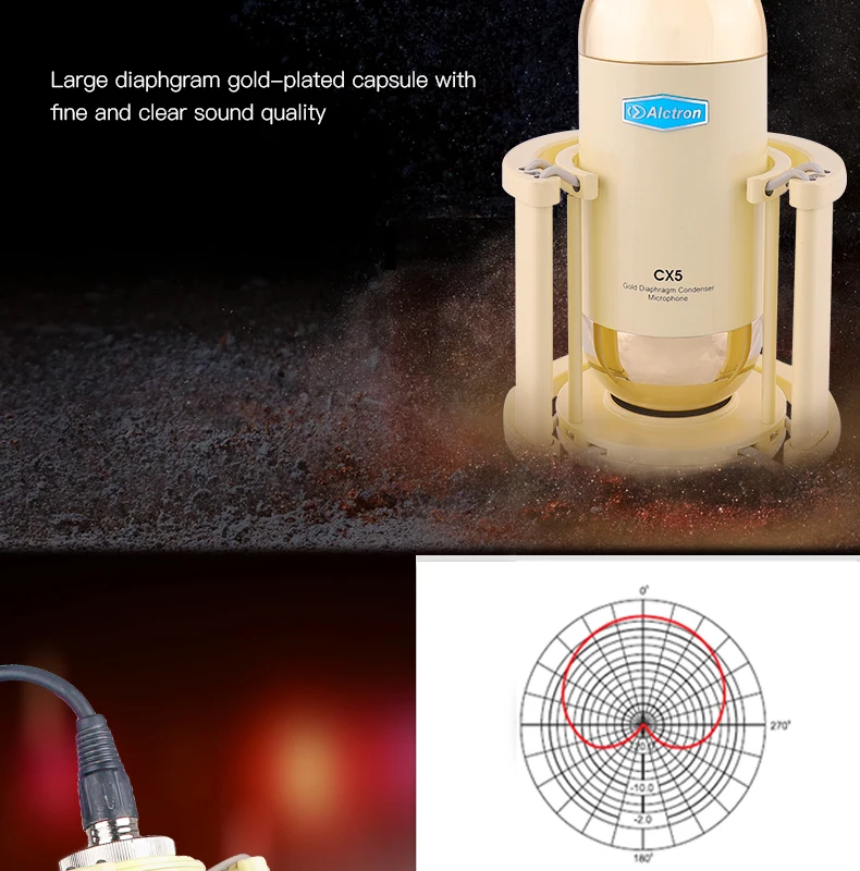 Product Name: 100% الأصلي Alctron CX5 كبير الذهب مطلي الحجاب الحاجز مكثف ميكروفون الذهب الفاخرة تصميم صوت ممتاز سجل إلى الطبيعة