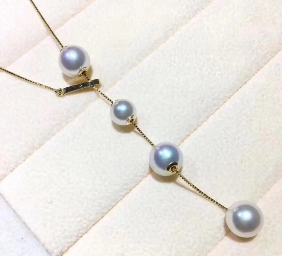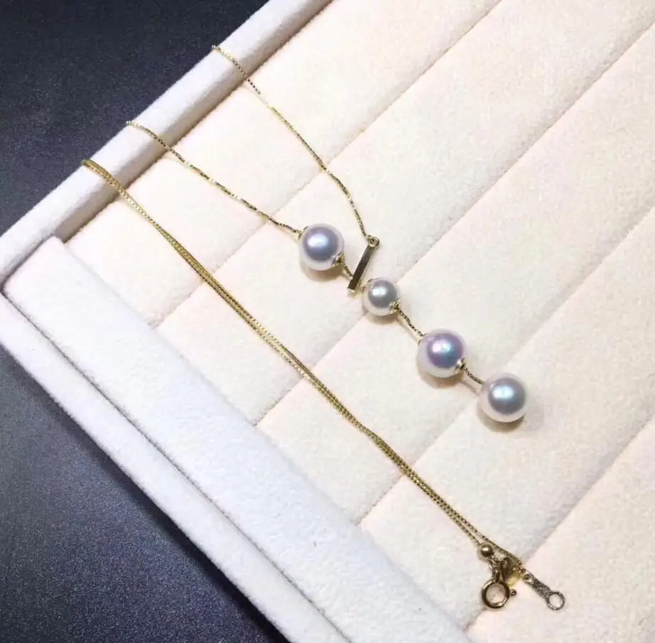 Product Name: نوبل مجوهرات الطبيعية 6-7 مللي متر 8-9 مللي متر أكويا اللؤلؤ الأبيض قلادة قلادة 18K الذهب قابل للتعديل