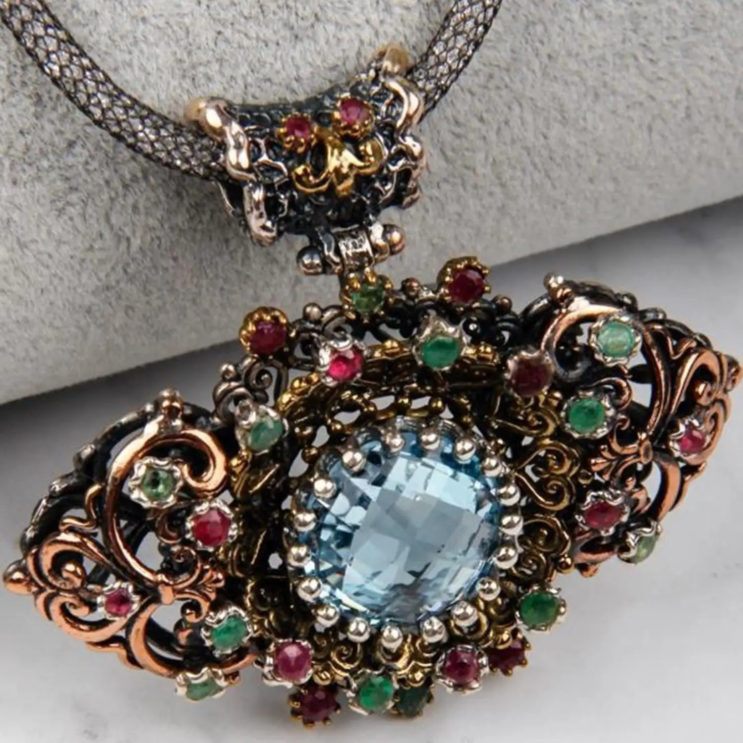 Special Offer توباز-روبي-الزمرد صنعة خاصة 925 قلادة فضية الاسترليني Discount 0% Today!