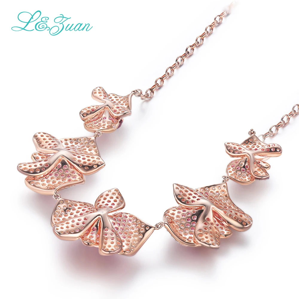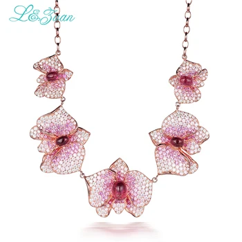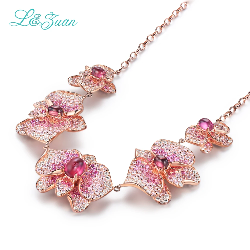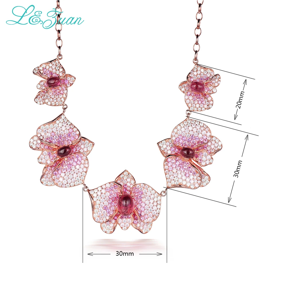 Special Offer L & Zuan غرامة مجوهرات 925 فضة تورمالين طبيعي زهرة قلادة قلادة للنساء الأحمر حجر فاخر مجوهرات الأزياء Discount 45% Today!