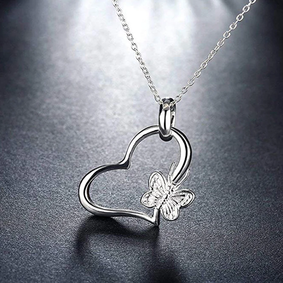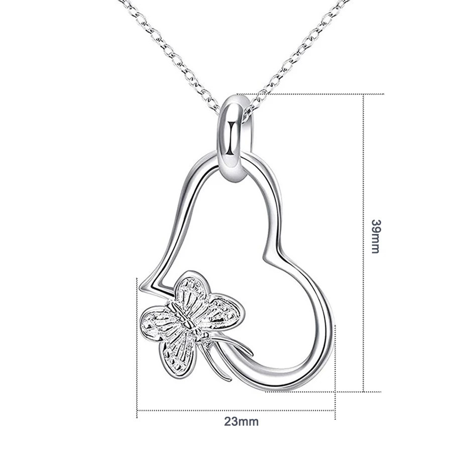 Product Name: YFN 925 فضة القلب و فراشة المعلقات القلائد سلاسل فضية المرأة مجوهرات 925 هدايا التخرج هدايا عيد الأم