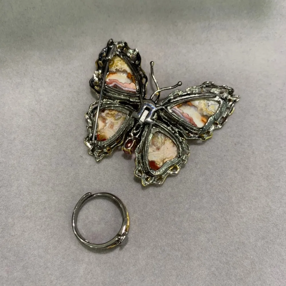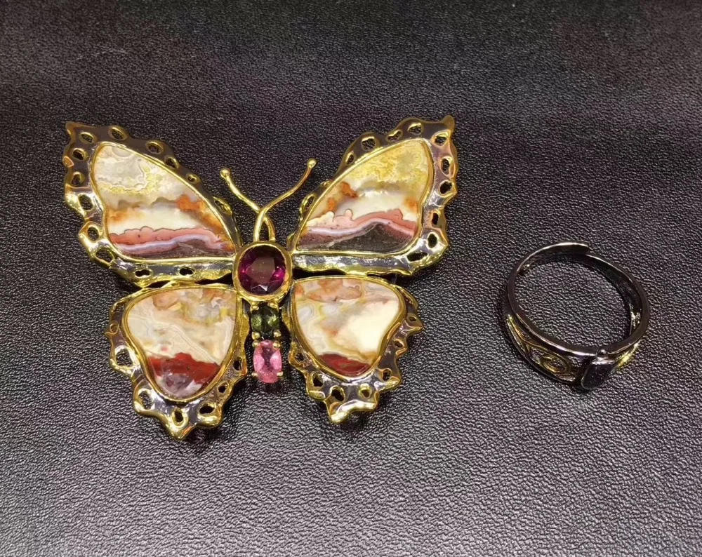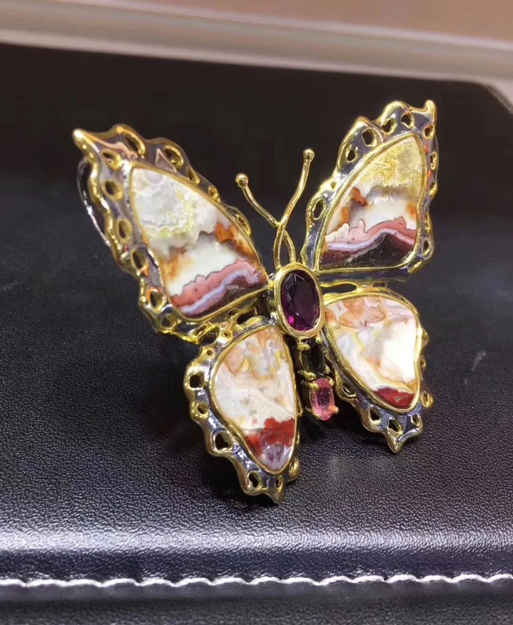 Special Offer بروش فراشة الأحجار شبه الكريمة الطبيعية 1 طراز يساوي 3 أنماط قلادة متعددة الألوان فقط 1 قطعة 925 فضي Discount 0% Today!