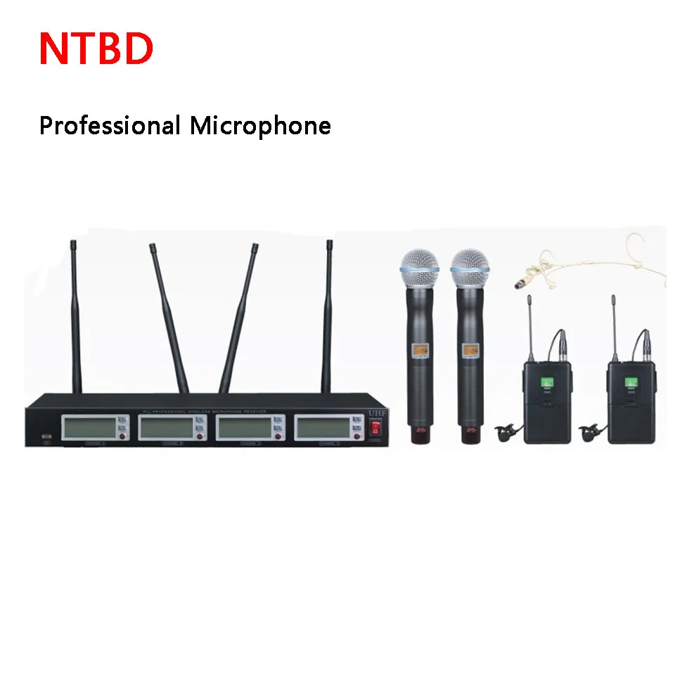 Product Name: سماعات نظام ميكروفون لاسلكي 4 قنوات احترافية للحفلات KTV UR24D للأداء المنزلي NTBD/ميكروفون لافالير