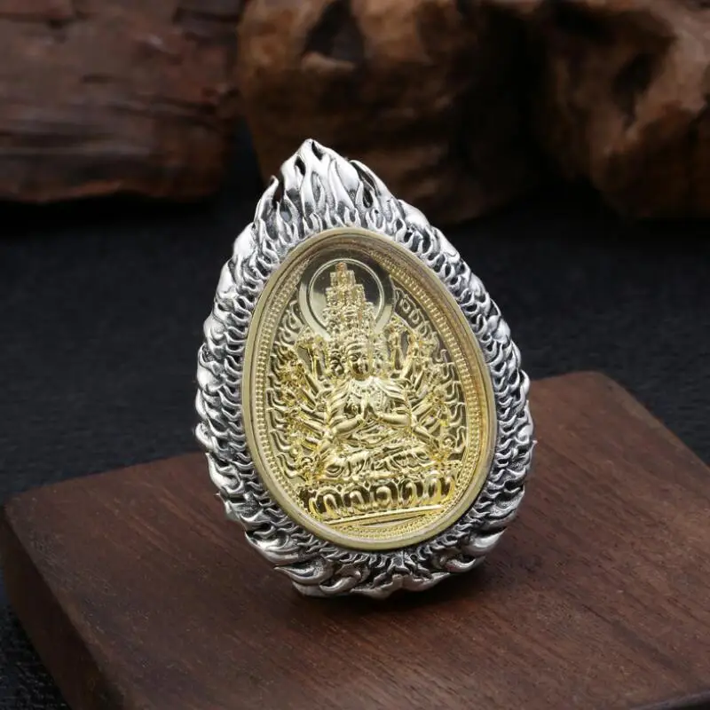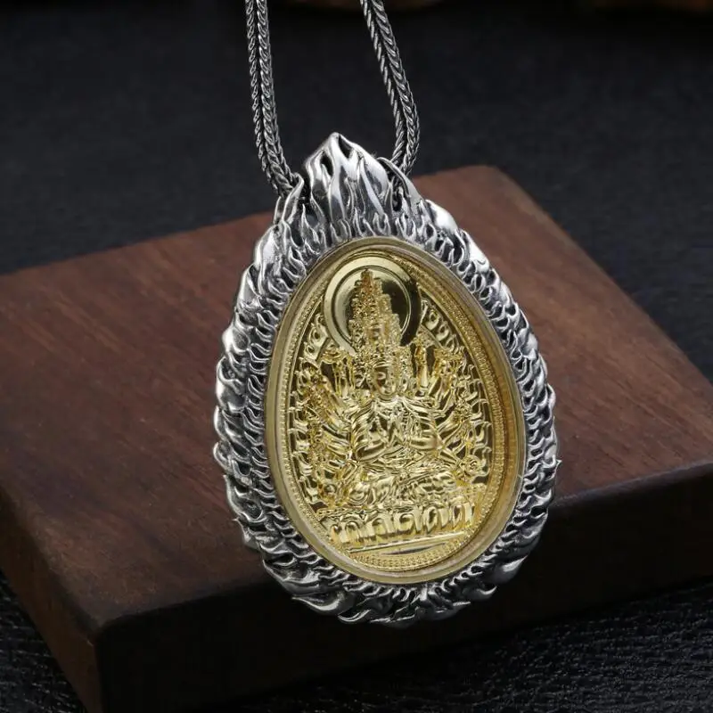 Product Name: كبير 925 الفضة ثمانية بوذا تمثال المعلقات 925 الاسترليني البوذية بوذا تميمة قلادة 12 الحيوانات حسن الحظ قلادة