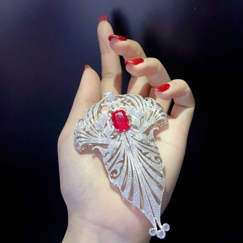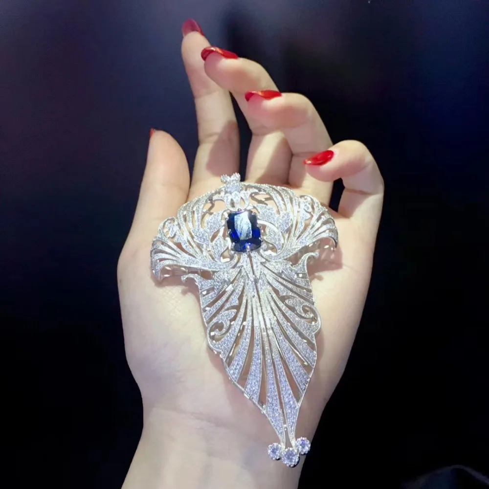 Product Name: 925 فضة مع مكعب الزركون بروش قلادة مزدوجة استخدام الأخضر الأحمر الأزرق اللون غرامة النساء مجوهرات شحن مجاني