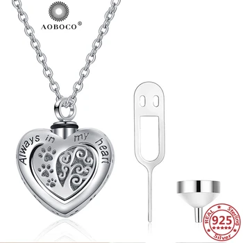Product Name: AOBOCO 925 فضة القلب البصمة جرة القلائد ل شجرة الرماد التذكاري Pet الرماد النعش دلاية قلادة مجوهرات