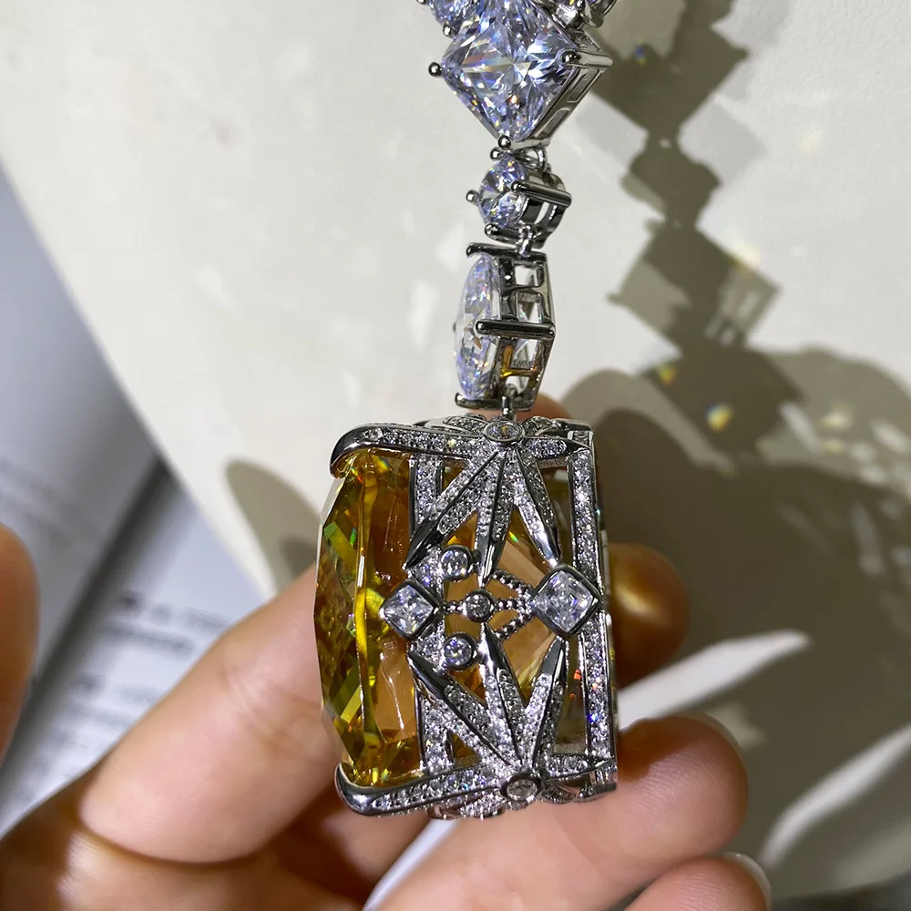 Product Name: Ffgem 100% الفضة 925 خلق مويسانيت سيترين الأحجار الكريمة الزفاف كوكتيل عقد به دلاية عالية الجودة غرامة مجوهرات بالجملة