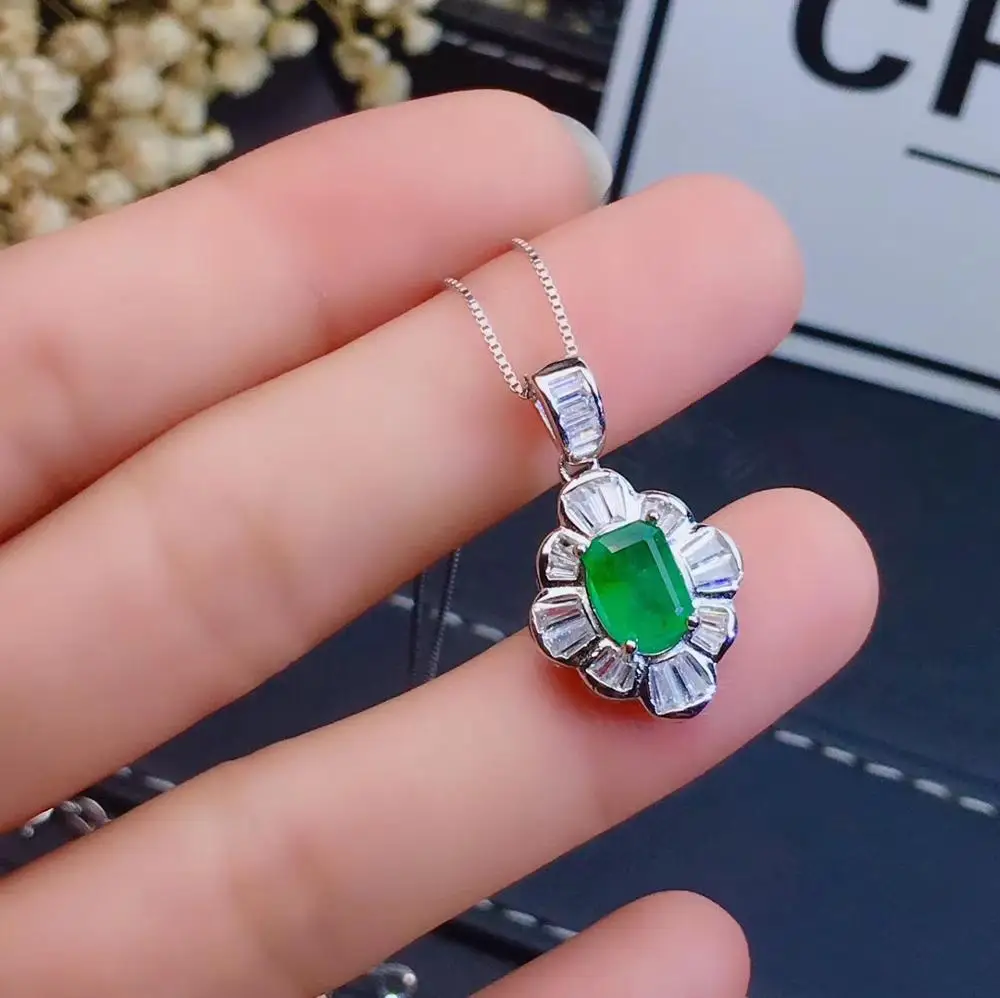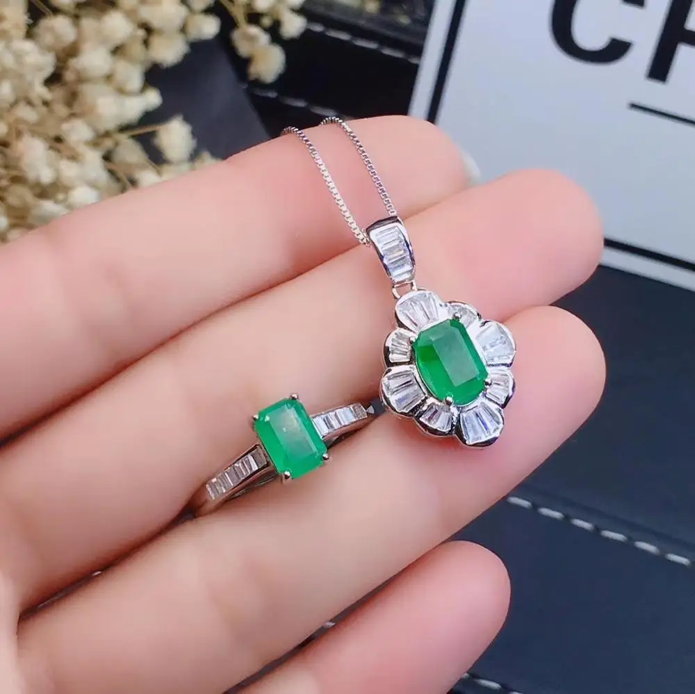 Product Name: KJJEAXCMY بوتيك المجوهرات 925 الاسترليني الفضة مطعمة الطبيعية الزمرد قلادة حلقة المرأة مجموعة دعم كشف