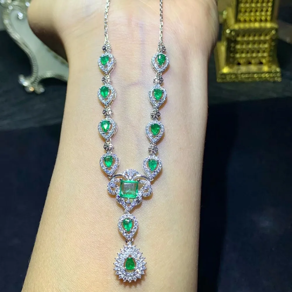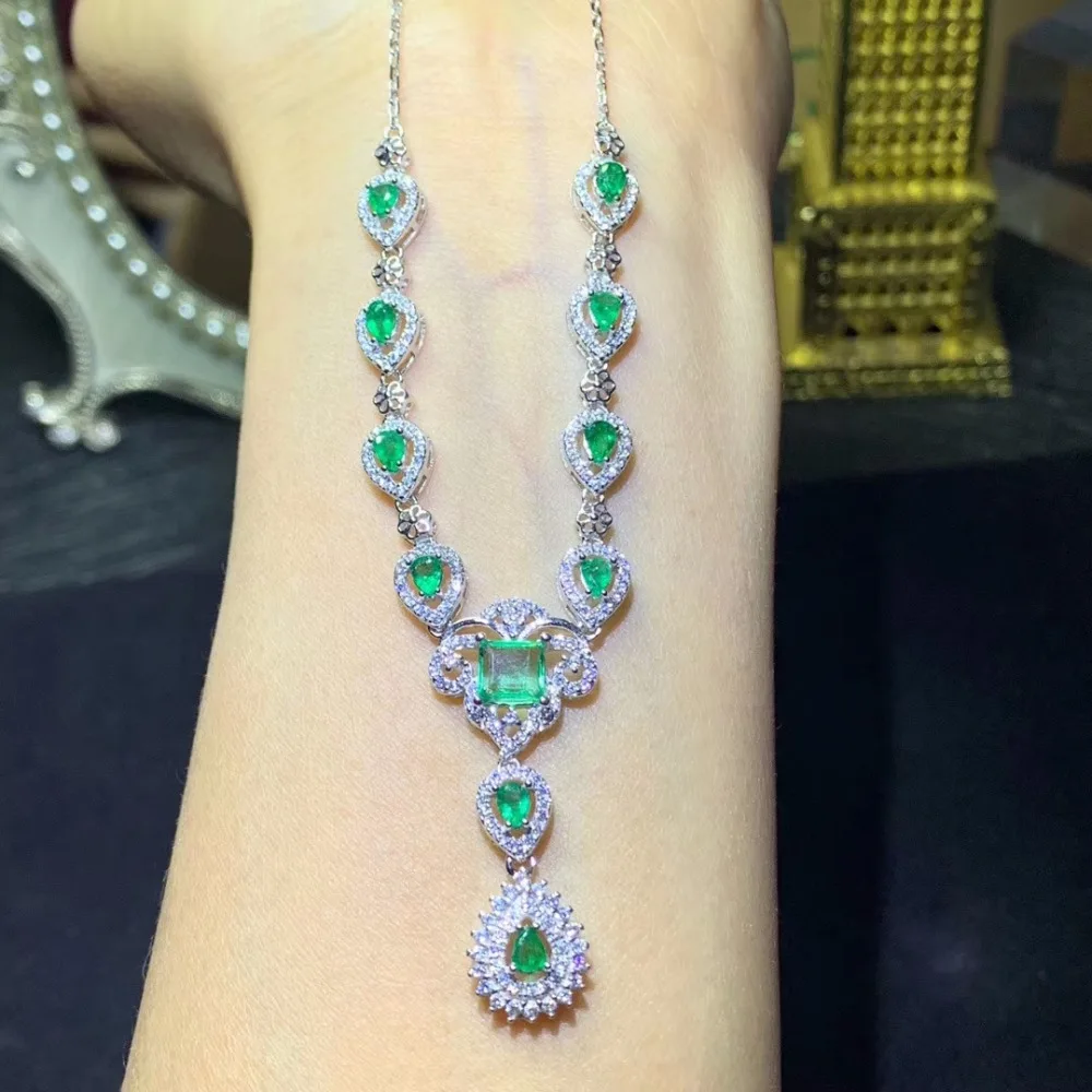 Product Name: KJJEAXCMY بوتيك المجوهرات 925 الاسترليني الفضة مطعمة الطبيعية الزمرد الإناث الفاخرة قلادة قلادة دعم اختبار