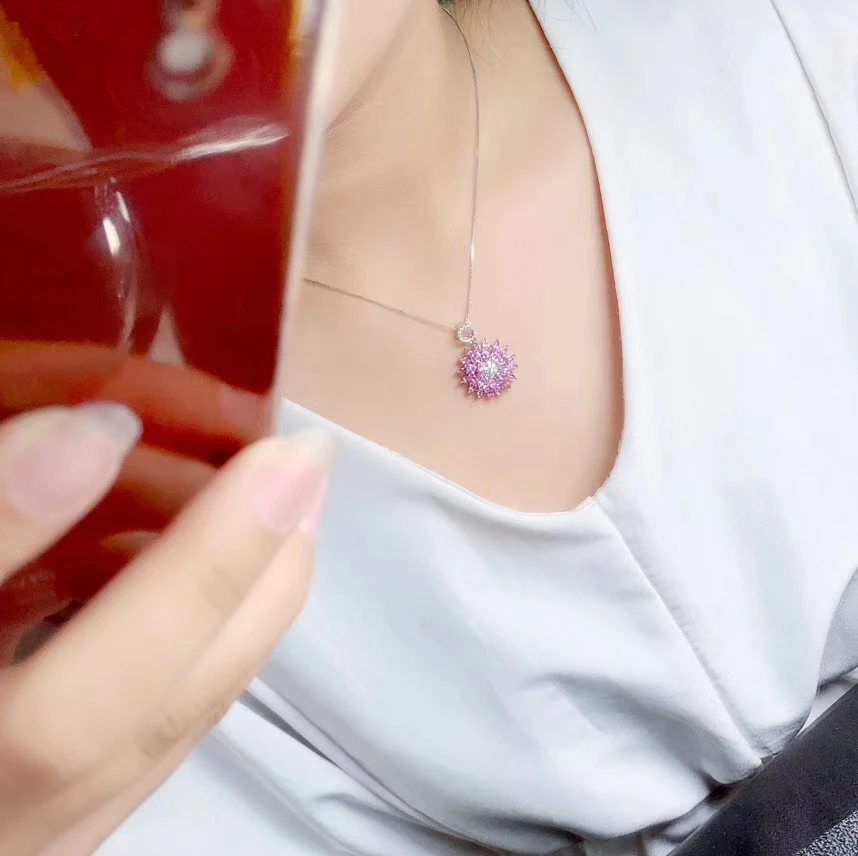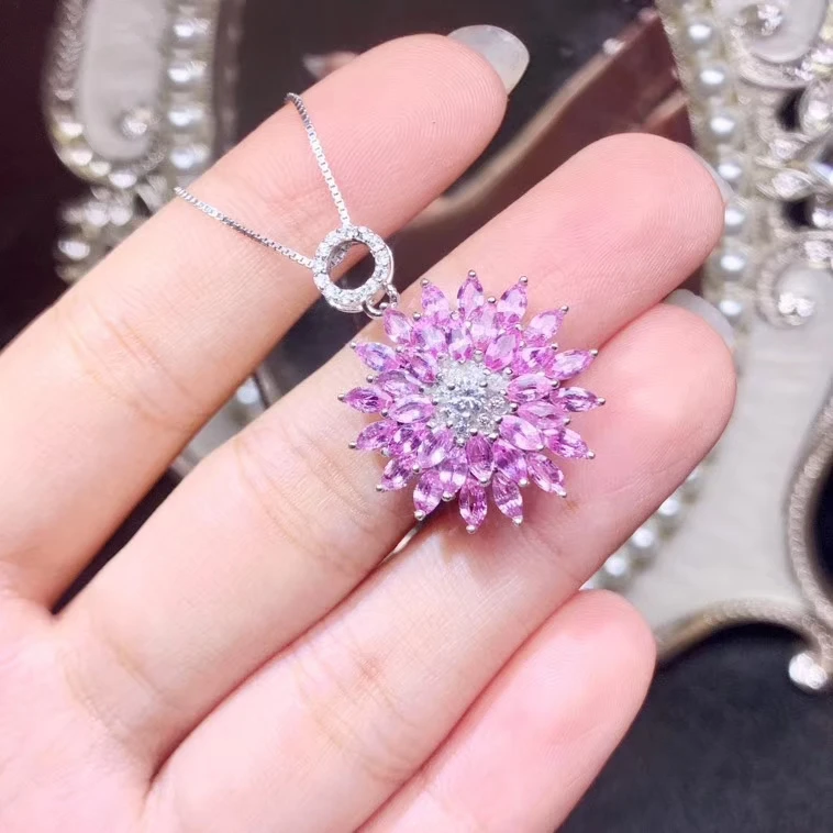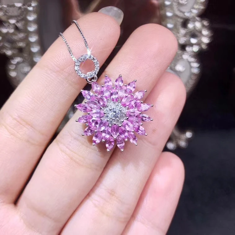 Product Name: Procogem رائع الطبيعية الوردي الياقوت قلادة القلائد الجميلة مجوهرات للنساء أكثر حقيقية الأحجار الكريمة 925 فضة #720