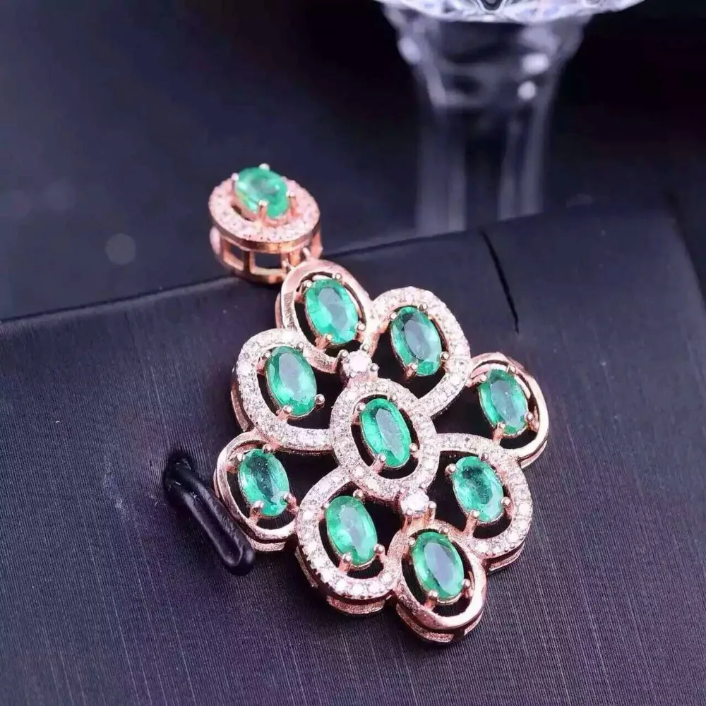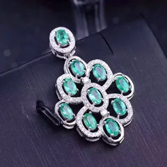 Product Name: الطبيعية الخضراء الزمرد حجر قلادة S925 فضة الاحجار الطبيعية قلادة قلادة العصرية الفاخرة الكبيرة جولة نساء حزب المجوهرات