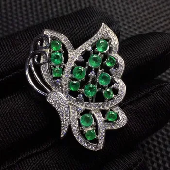Product Name: الأخضر الطبيعي الزمرد دبابيس قلادة S925 الفضة الأحجار الكريمة الطبيعية دبابيس الموضة نعمة فراشة صديقة هدية مجوهرات