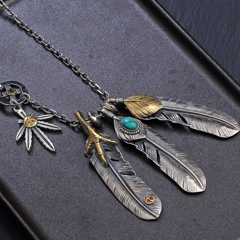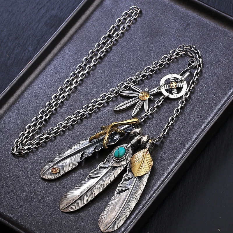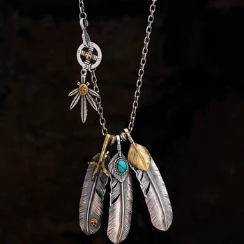 Product Name: S925 فضة تاكاهاشي غورو الفيروز النسر مخلب ريشة قلادة فضية للنساء الرجال جدا القرن سلسلة كم سترة سلسلة