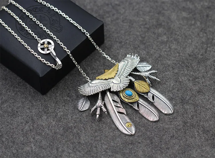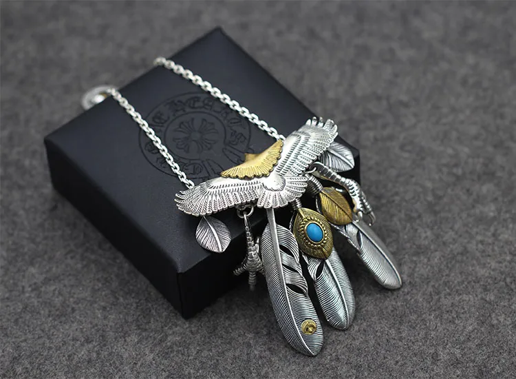 Product Name: S925 فضة قلادة قلادة شخصية الاسلوب المناسب الريش شكل الصليب مجموعة الطيور المستديرة لإرسال هدية عاشق