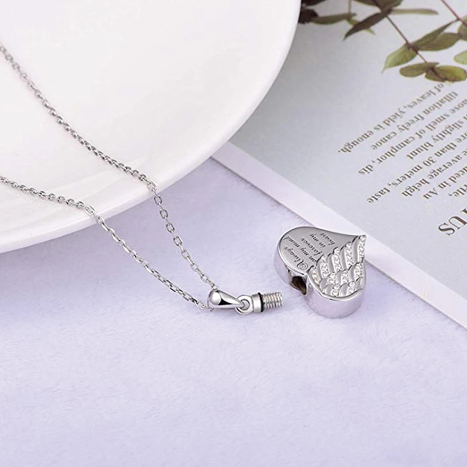 Special Offer YAFEINI 925 فضة القلب القلادة ل رماد الملاك الجناح 925 تذكارية الجرار القلائد الحيوانات الأليفة الرماد النعش حامل الحرق Discount 0% Today!